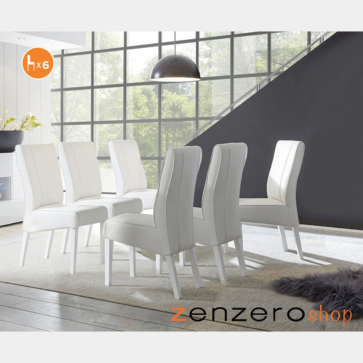 6 Sedie in ecopelle. moderne e di design, linee pulite, ampie e robuste superfici, e in finitura bianco, lavorate con geometriche forme per creare un movimento sinuoso.