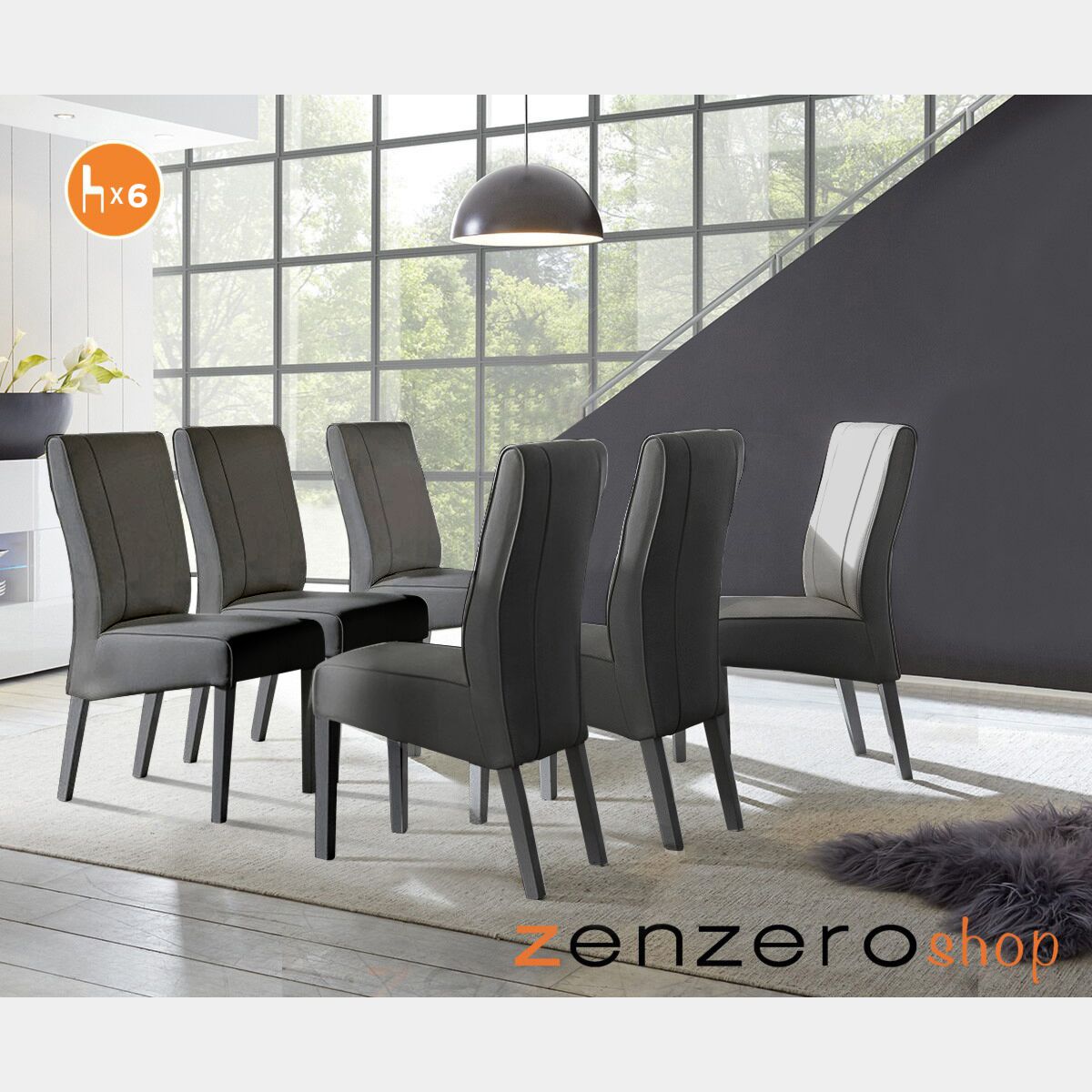 6 Sedie in ecopelle. moderne e di design, linee pulite, ampie e robuste superfici, e in finitura Grigia, lavorate con geometriche forme per creare un movimento sinuoso.
