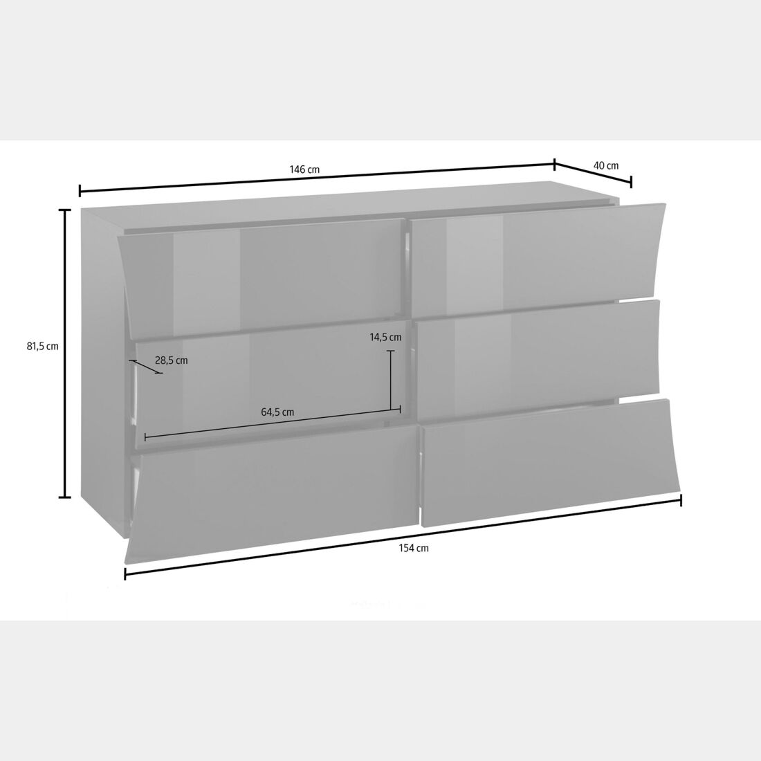 Comò linea arco con 6 cassetti grande in finitura bianco laccato lucido