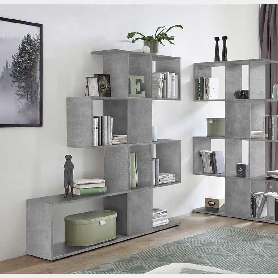 Libreria di deisgn RUN, made in Italy, colore beton, 4 ripiani