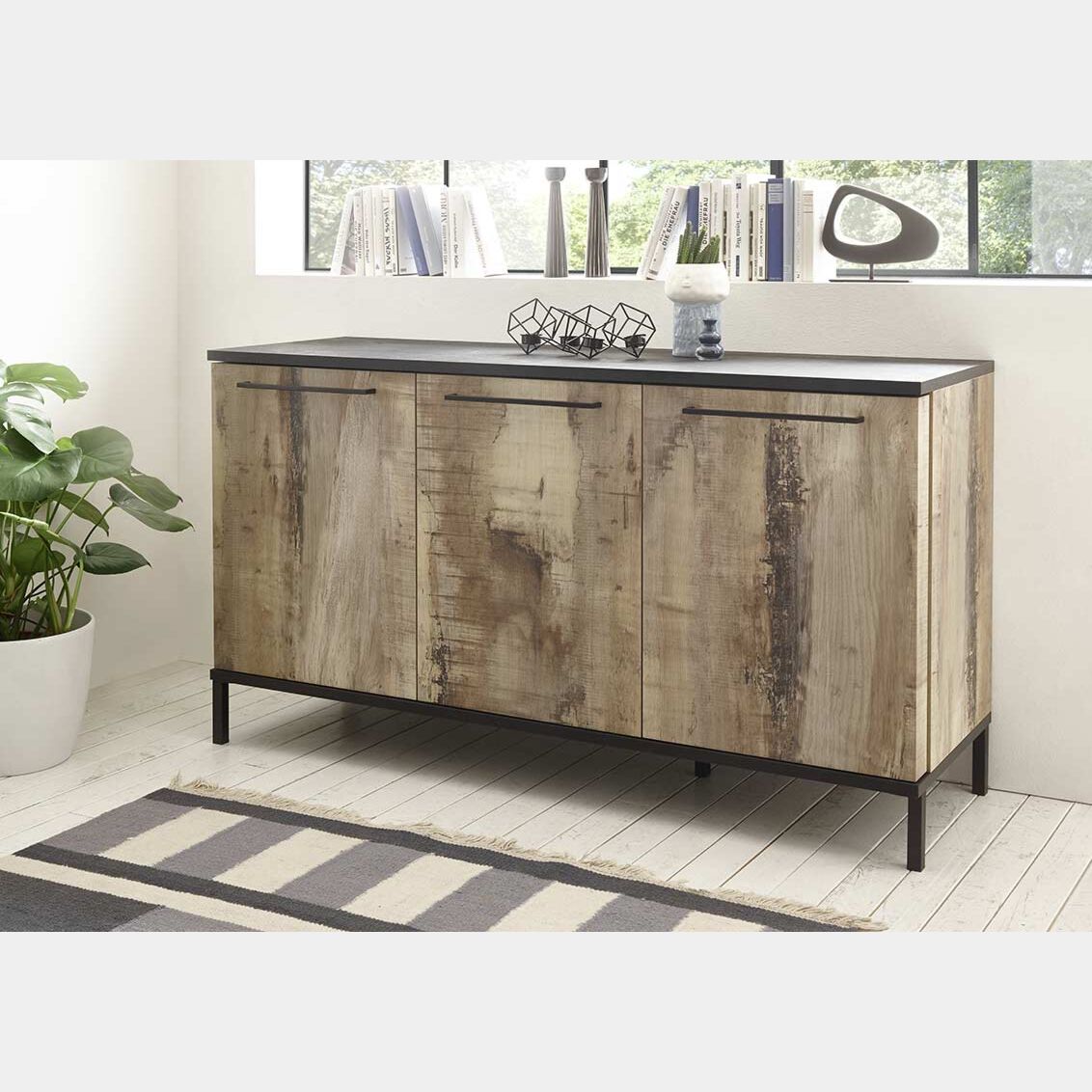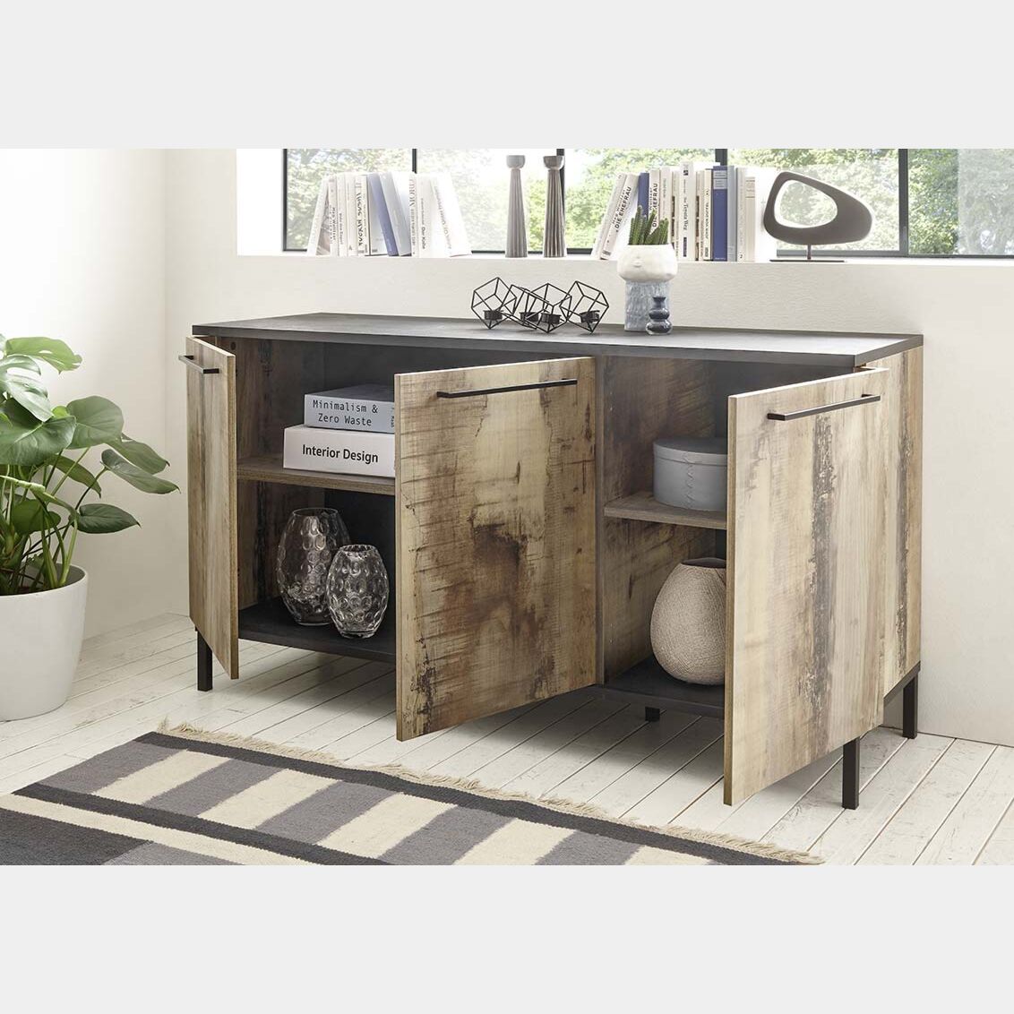Madia in stile industry con 3 ante finitura Nero bruciato e Pero