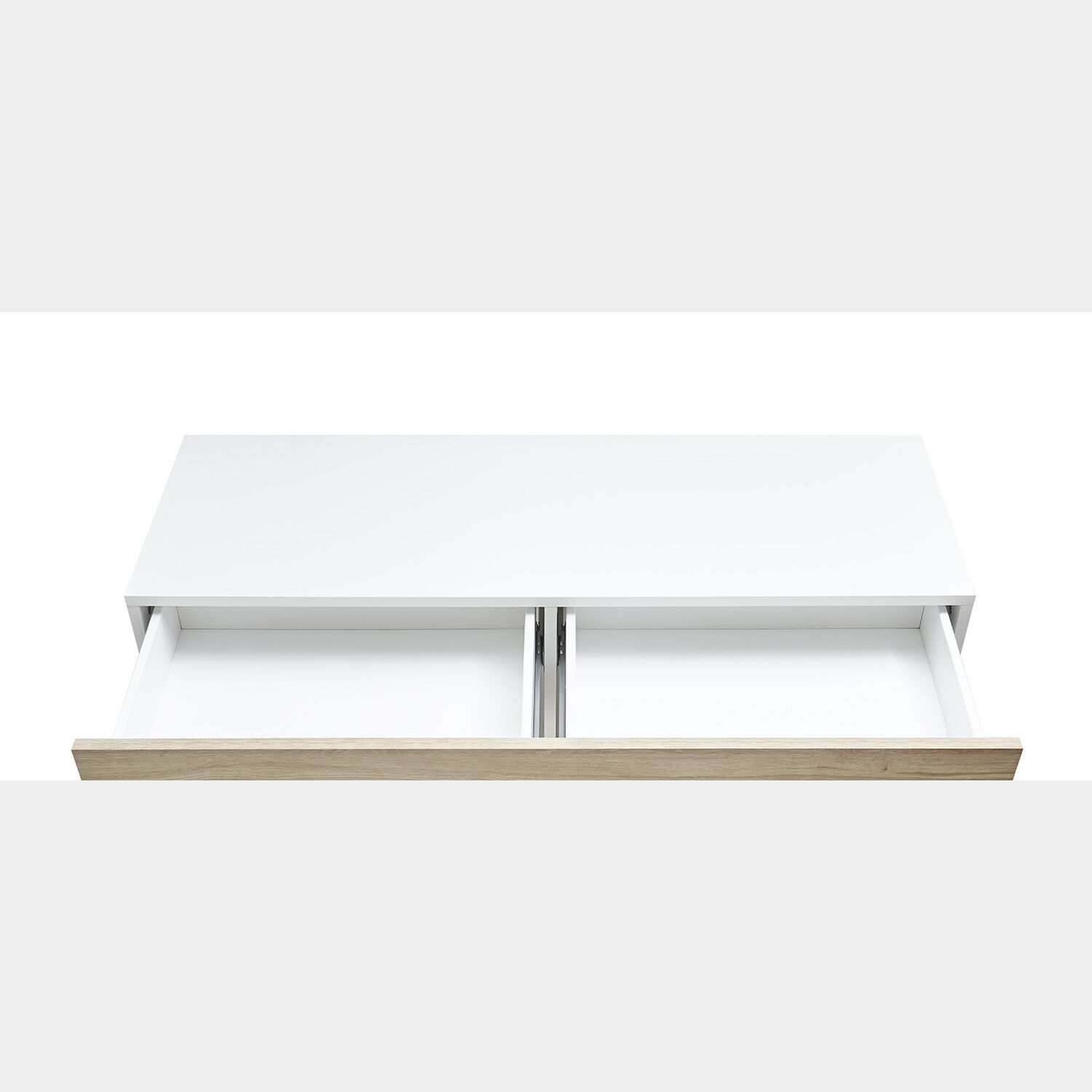 Madia moderna, ad 1 cassetto e 1 anta ribalta, finitura Bianco laccato lucido