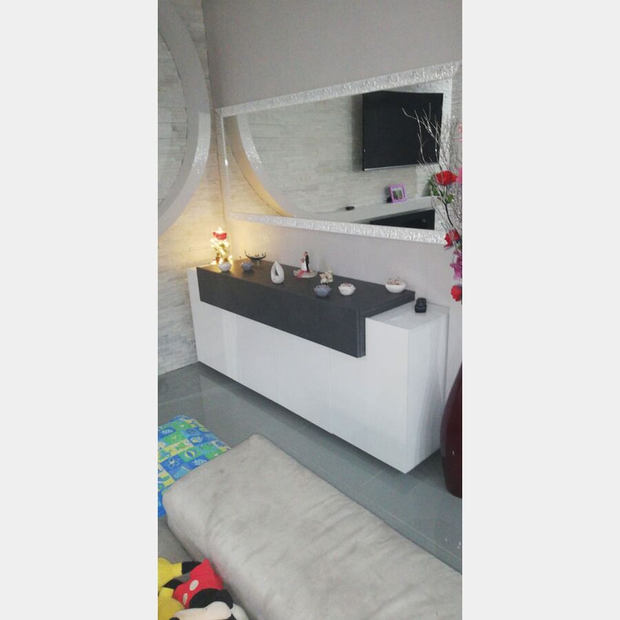 ACQUISTA ANCHE TU Madia moderna bianca lucida con cassetto ardesia a 4 ante