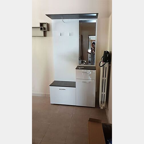 ACQUISTA ANCHE TU Mobile d'ingresso con armadio bianco lucido e beton scuro