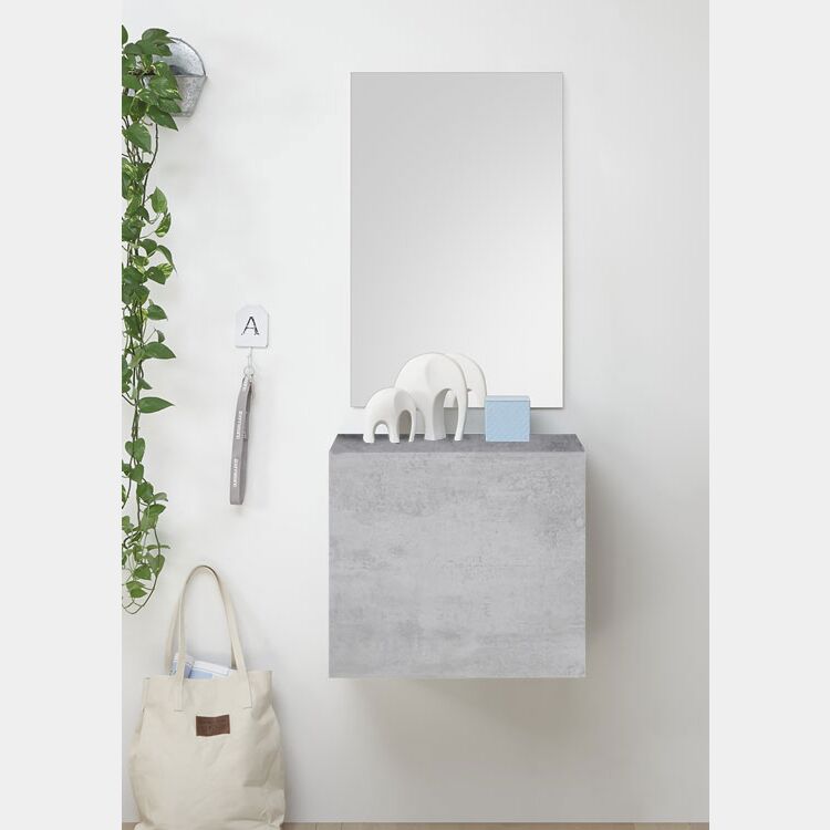 Mobile da ingresso made in Italy composto da cubo porta oggetti L.57 H.51 P.31, finitura Beton.