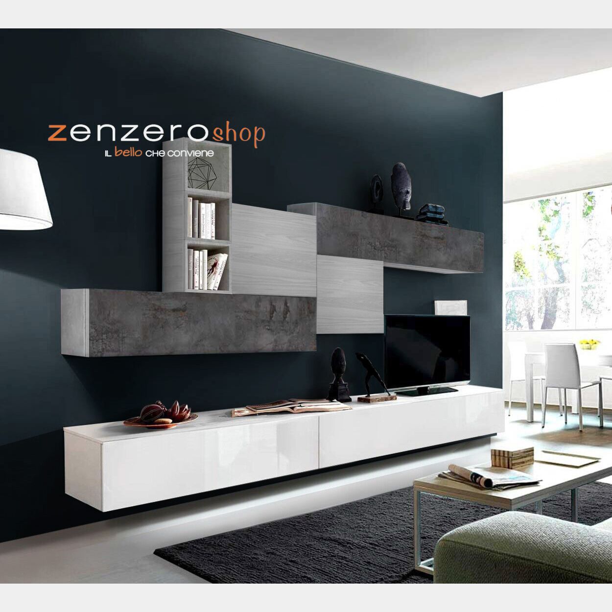 Parete attrezzata con basi tv, pensili vasistas e ribalta, Ossido, composizione libera