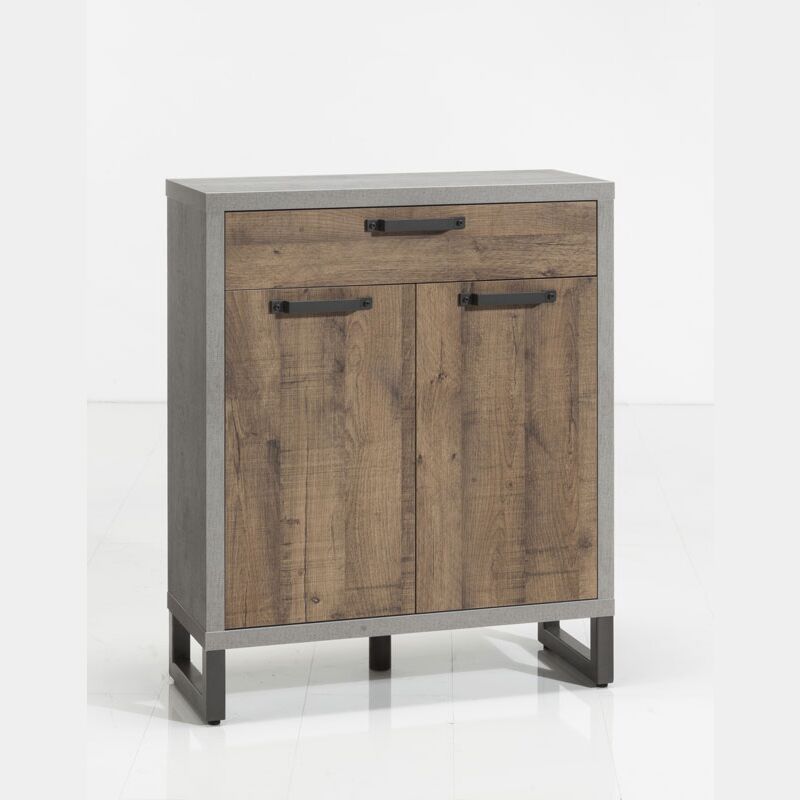 Mobiletto scarpiera Industry d'ingresso 2 ante 1 cassetto, Cemento e Rovere invecchiato