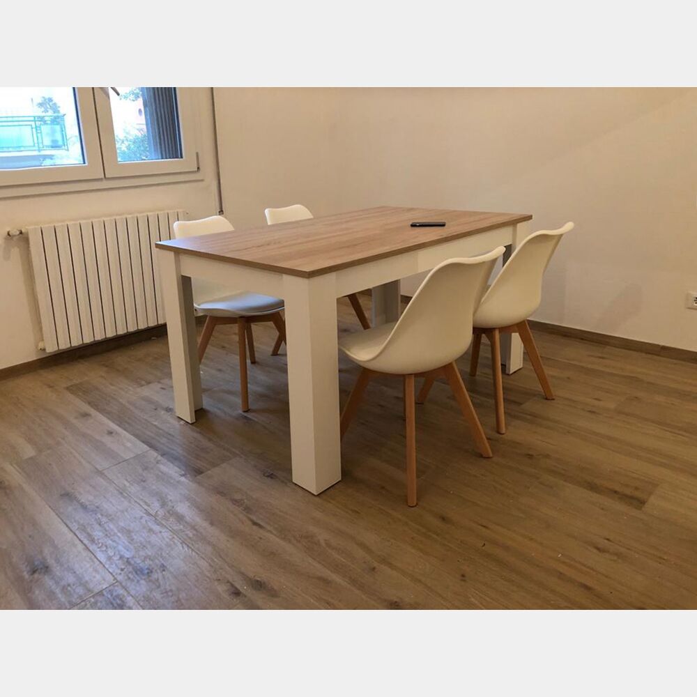 Il tavolo è nel materiale melaminico, per cui ci posso appogiare vari, piatti, posate ecc. senza il rischio di rovinare il piano. Il design semplice e pulito assicura un arredo moderno ed elegante, che dona calore e rende informale l'ambiente.