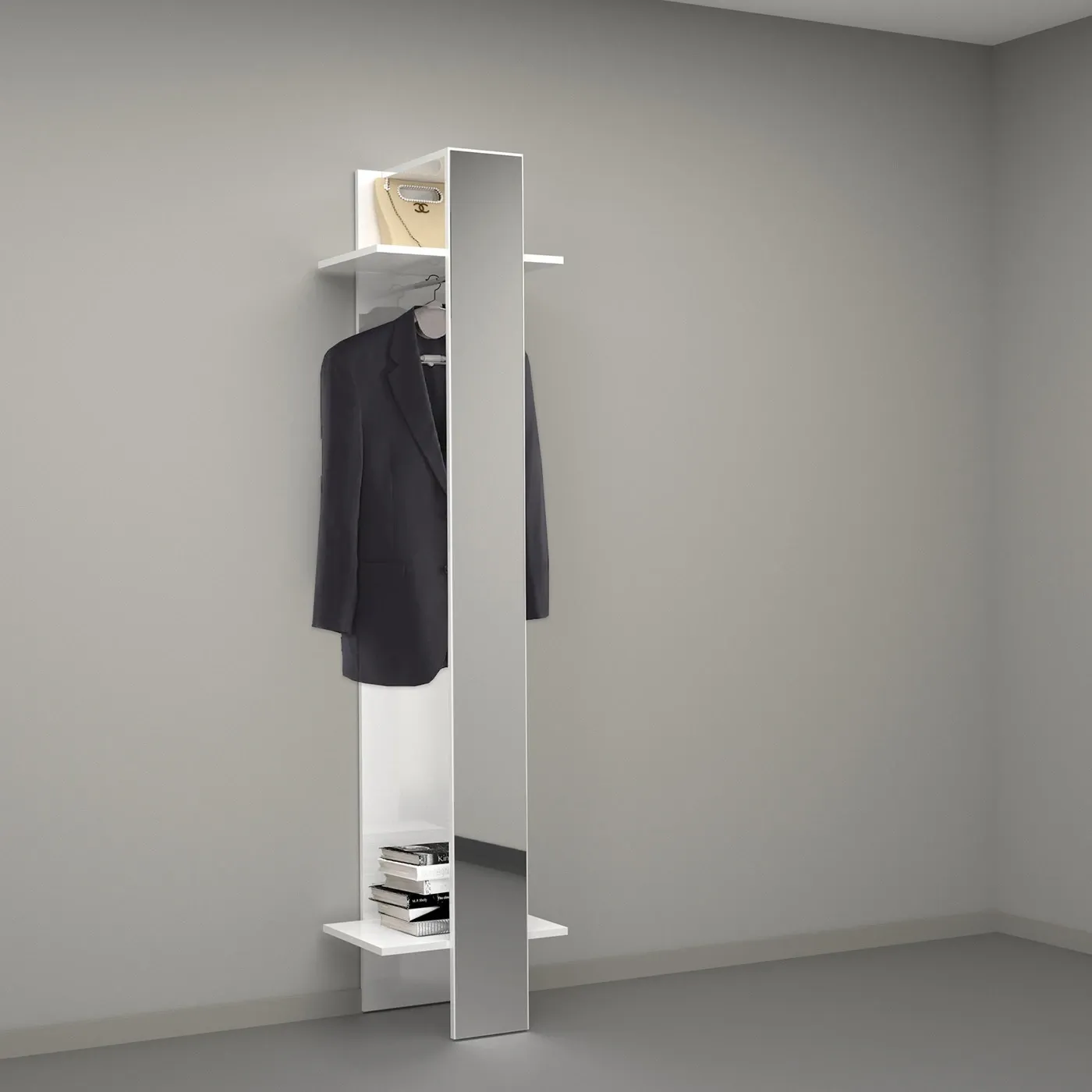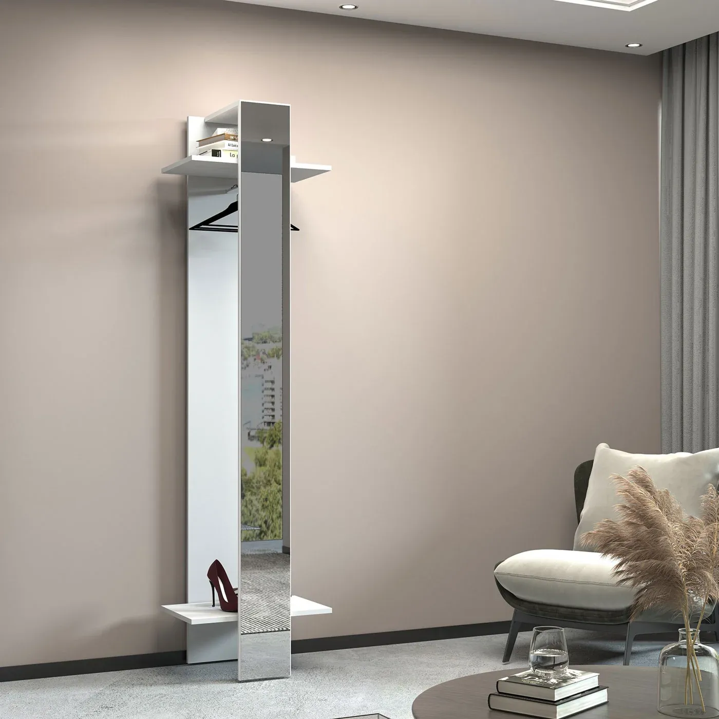 Questo appendiabiti è caratterizzato da una serie di funzionalità che lo rendono un elemento pratico ed essenziale per l'ingresso o il corridoio. Offre una soluzione compatta, ma capiente, per organizzare gli accessori personali. Dotato di 1 ampio specchio frontale, questo appendiabiti prevede anche 2 ripiani: uno nella parte inferiore e uno in quella superiore. Mette dunque a disposizione uno spazio sufficiente per riporre vari oggetti personali e avere tutto ciò che serve a portata di mano prima di uscire di casa.