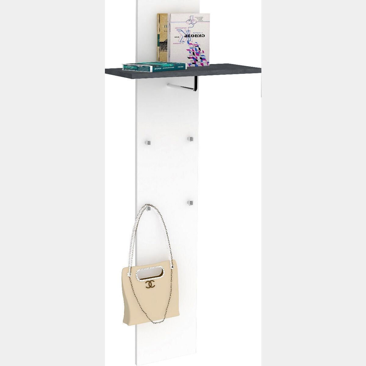 Appendiabiti da ingresso, bianco lucido e ardesia, made in Italy