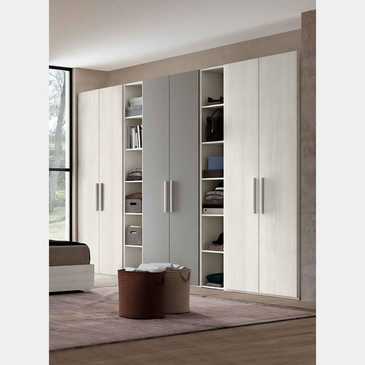 La composizione Bianco Essenza e Grigio Argento è formata da 3 Armadi a 2 ante battenti e 2 librerie. Questi arredi della collezione Element per tua zona notte sono disponibili in diverse finiture e modelli.