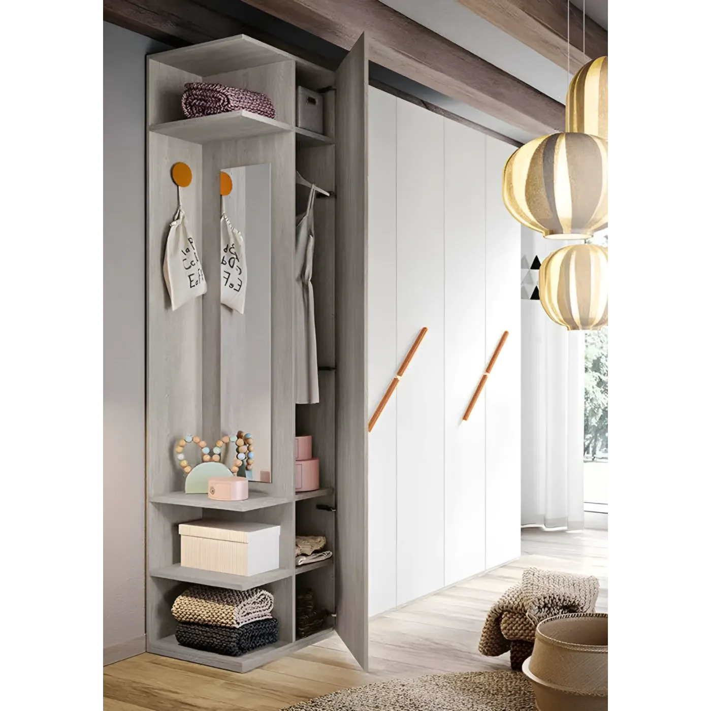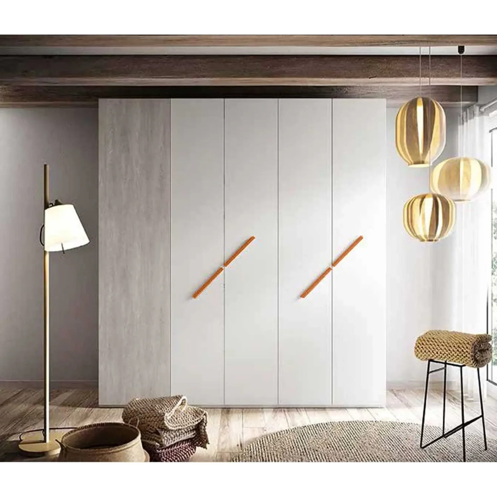 L'unione tra design e comfort ha generato l'armadio moderno con ante battenti. Grazie infatti alle sue particolari maniglie, alla libreria termanale e alle 5 ante fornisce un ampio spazio di appoggio esaltandone l'estetica.