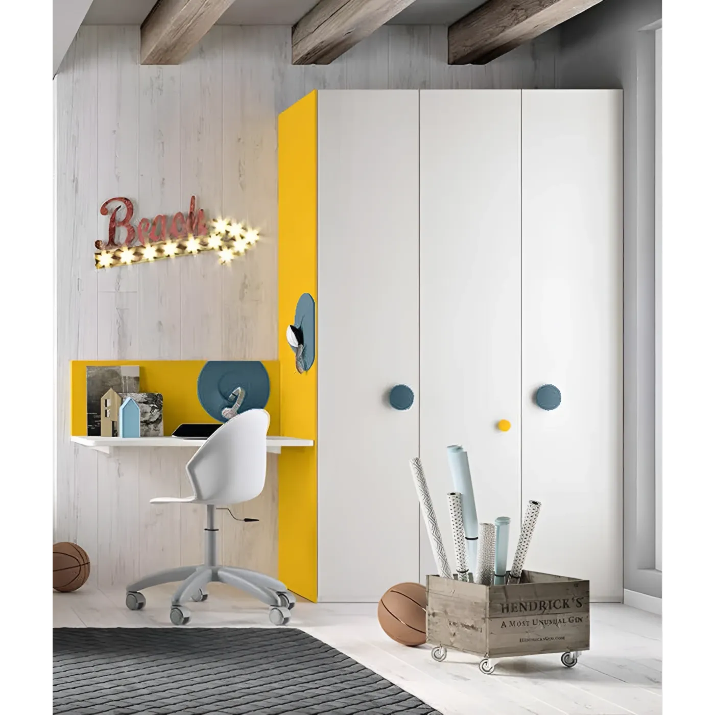 Armadi per camerette con 3 ante in finitura Bianco frassino e Girasole