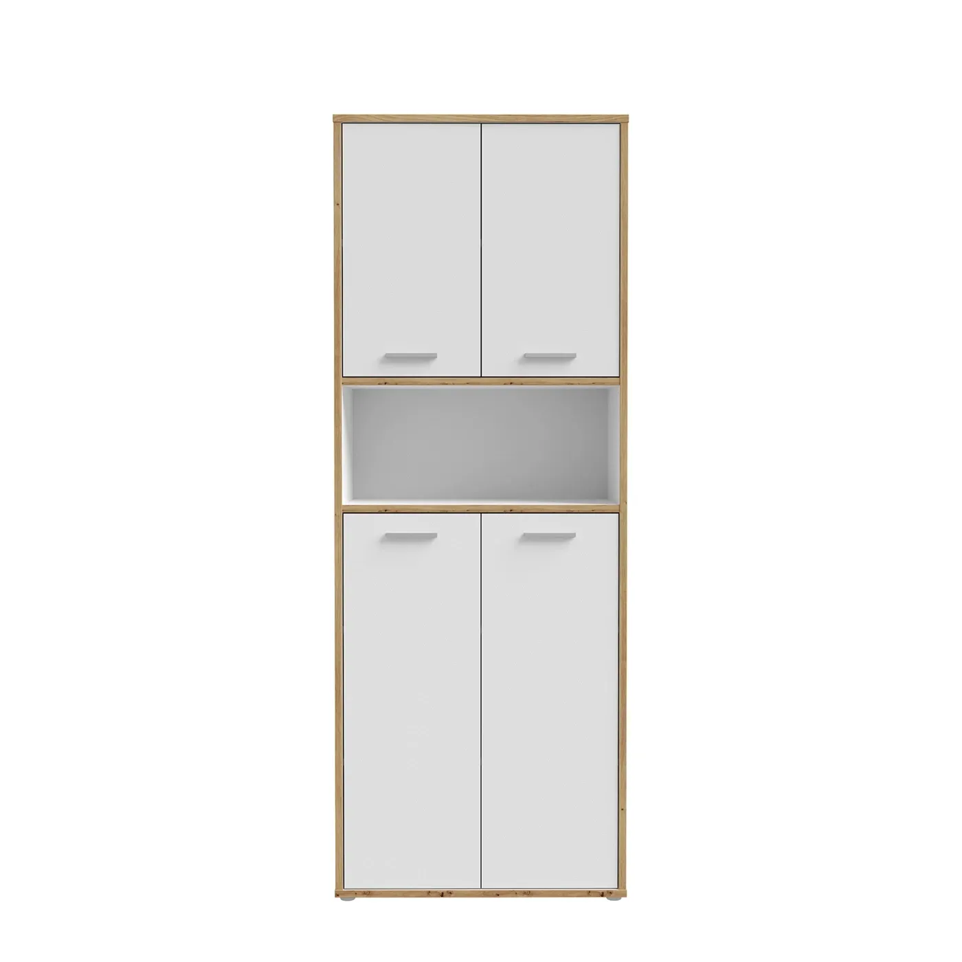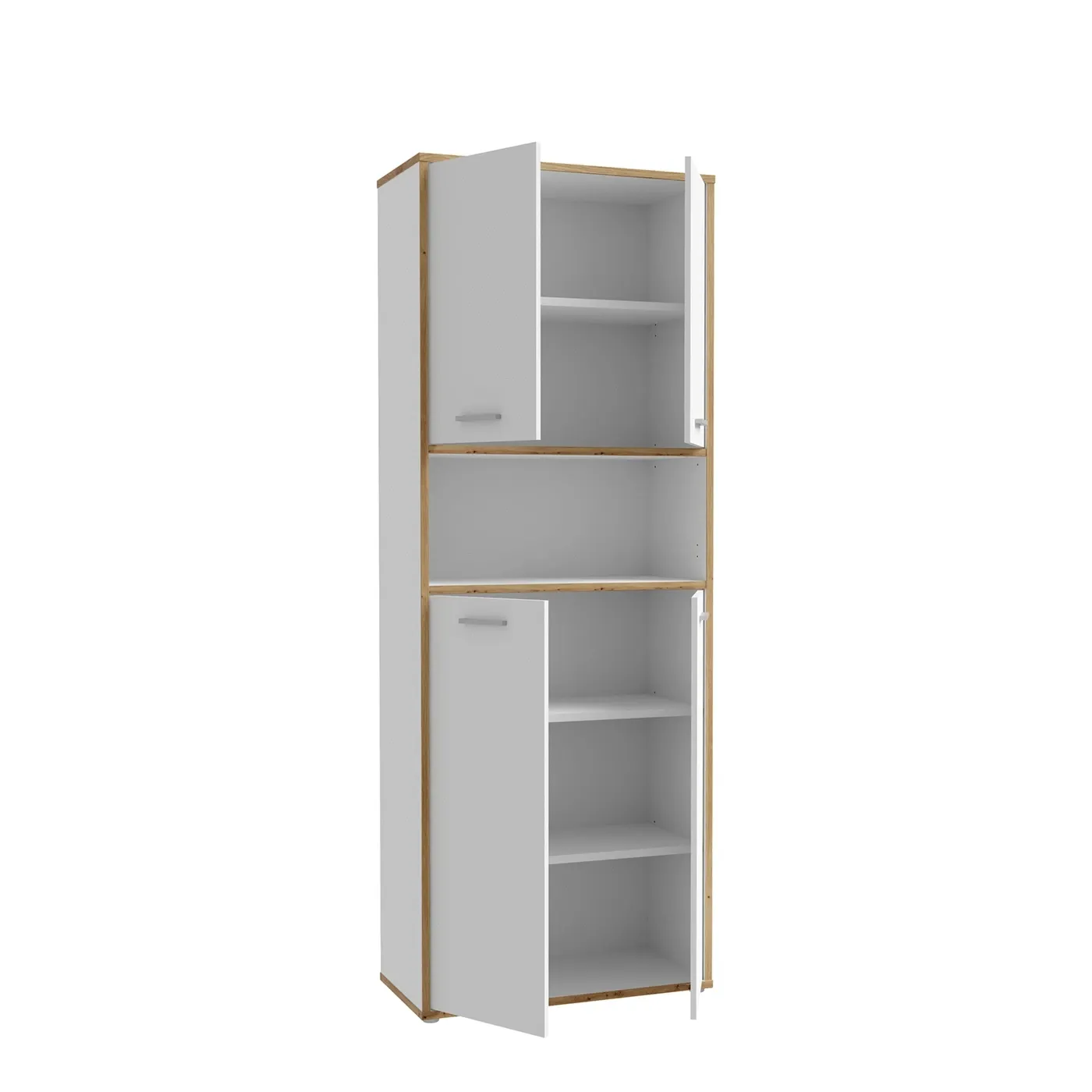 Armadietto 1 vano a giorno, 85x227x42 h cm, Bianco e Rovere artisan