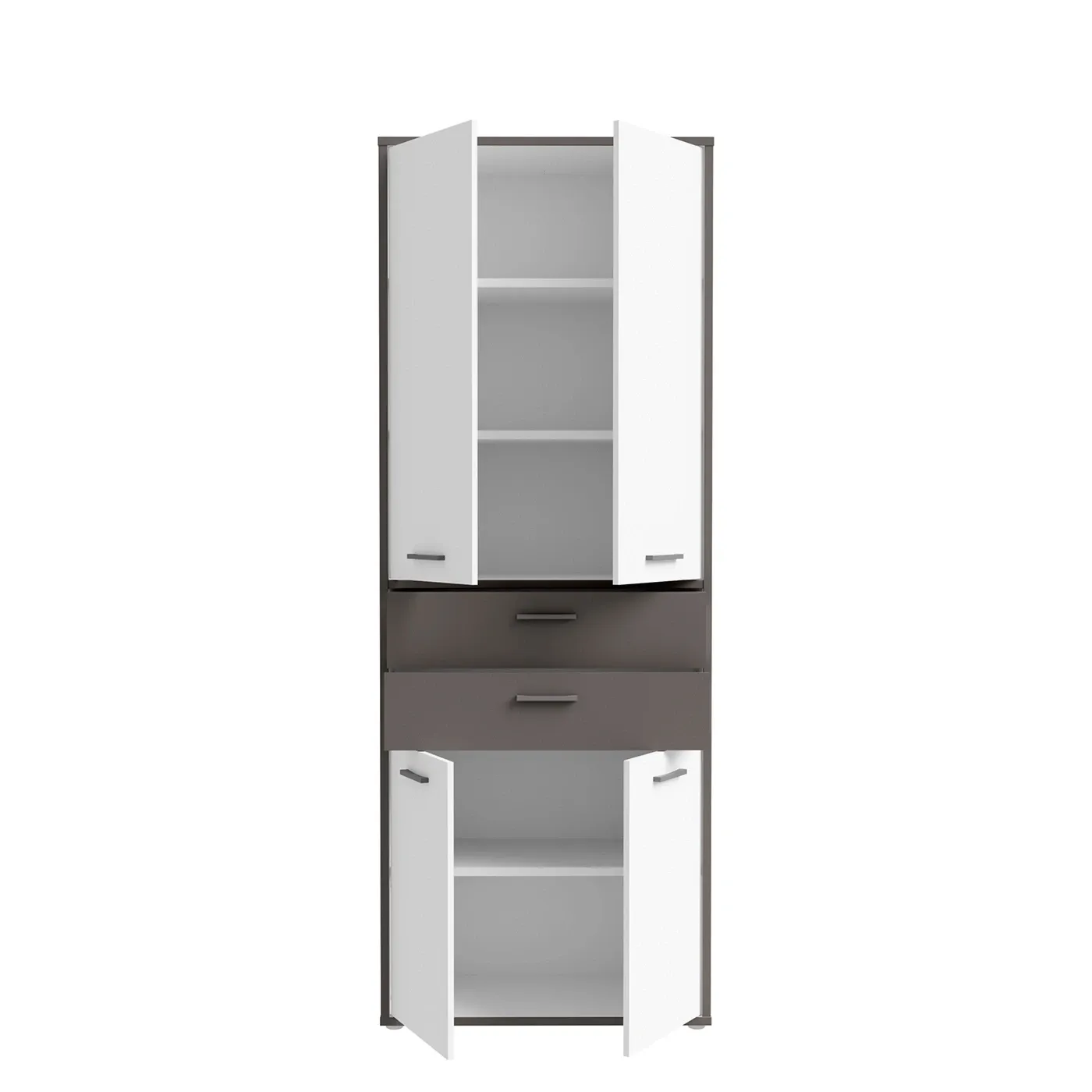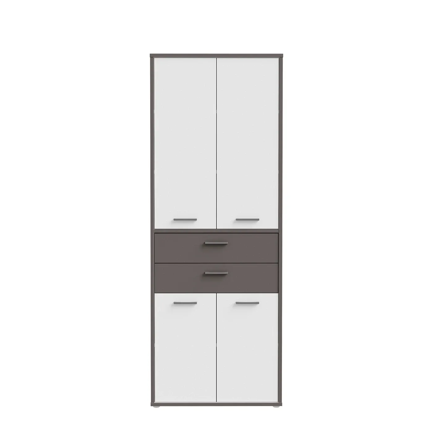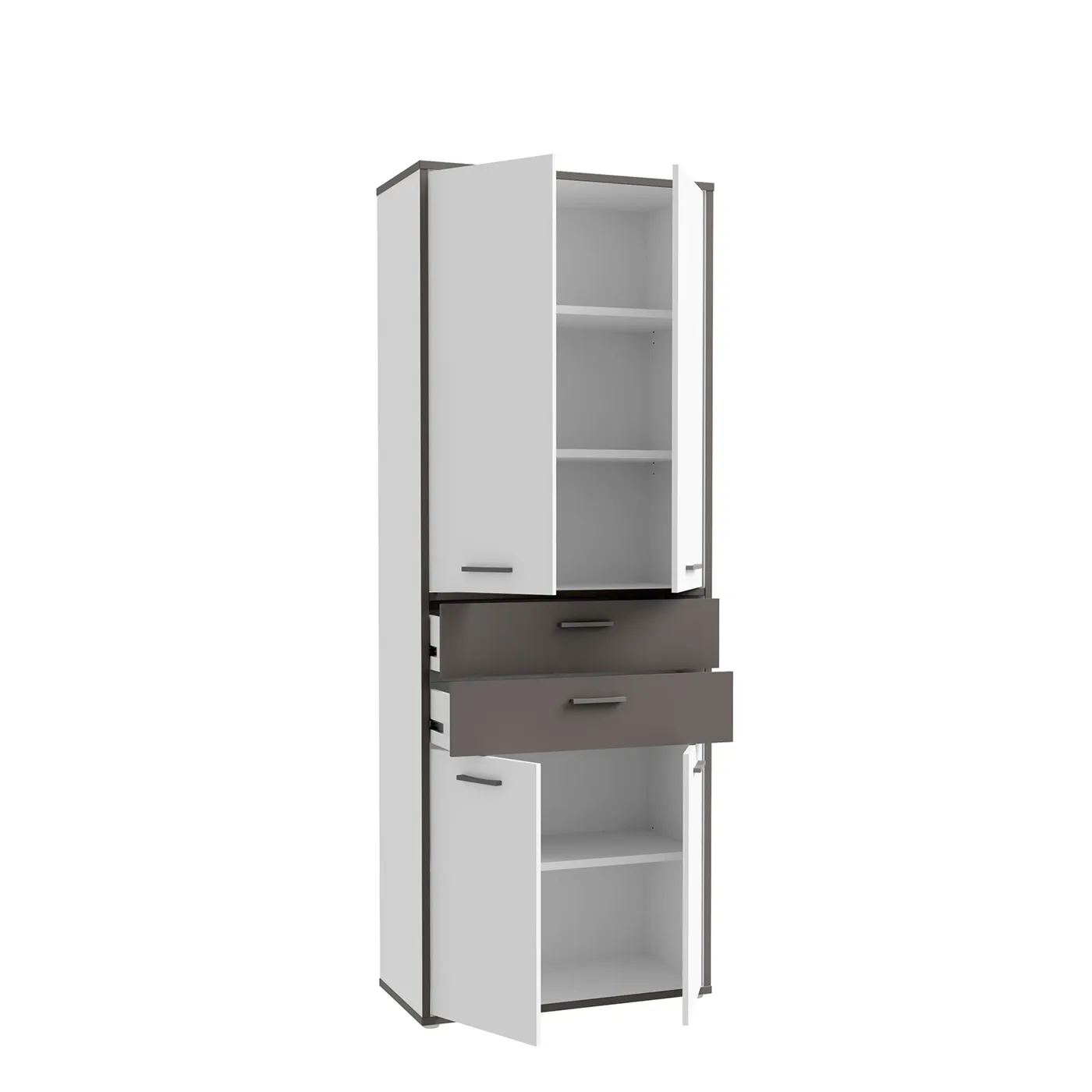 Armadietto 4 ante 2 cassetti, 85x227x42 h cm, Bianco e Grigio scuro