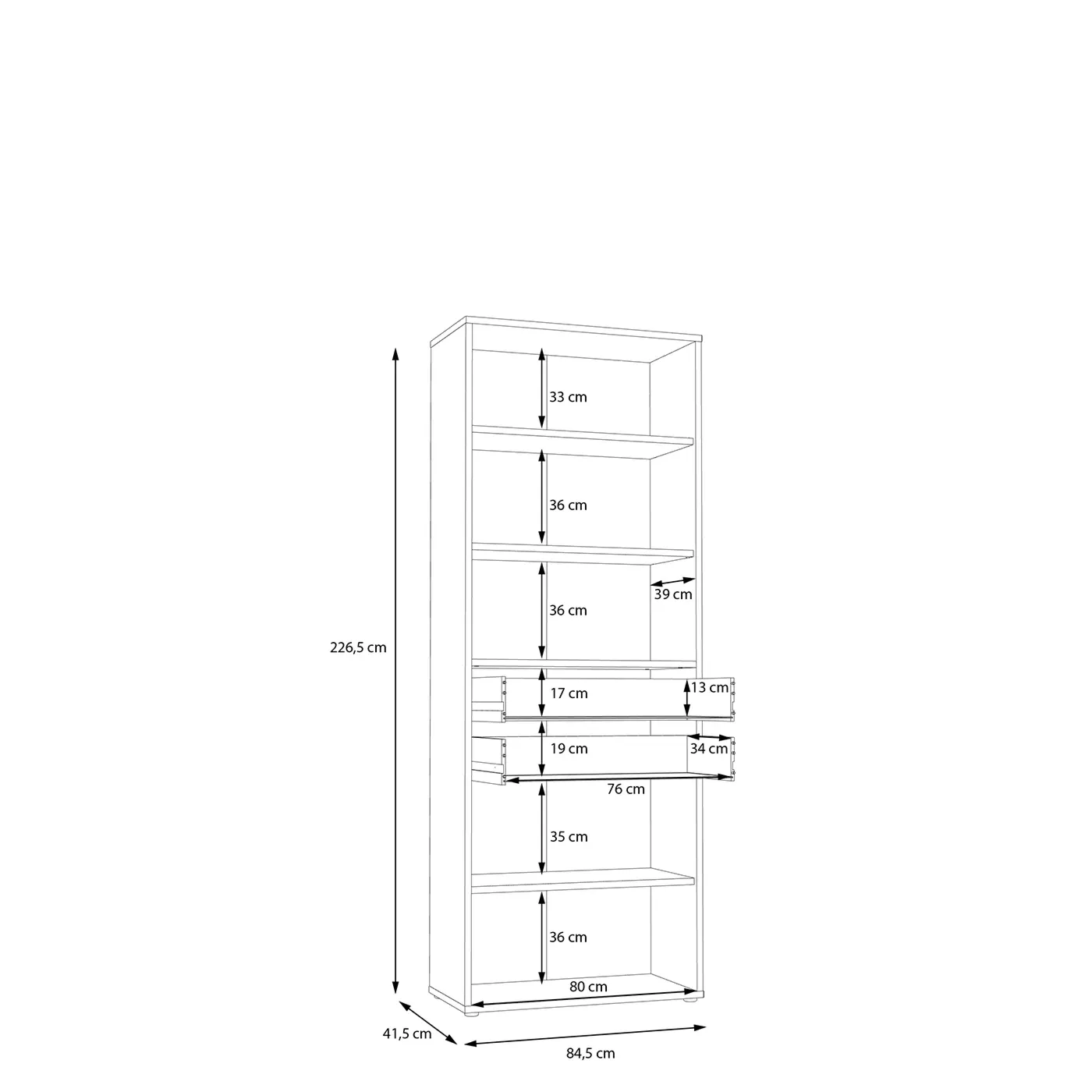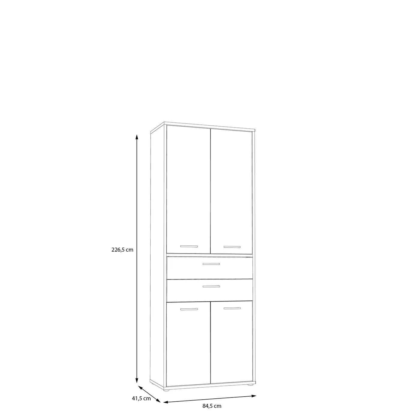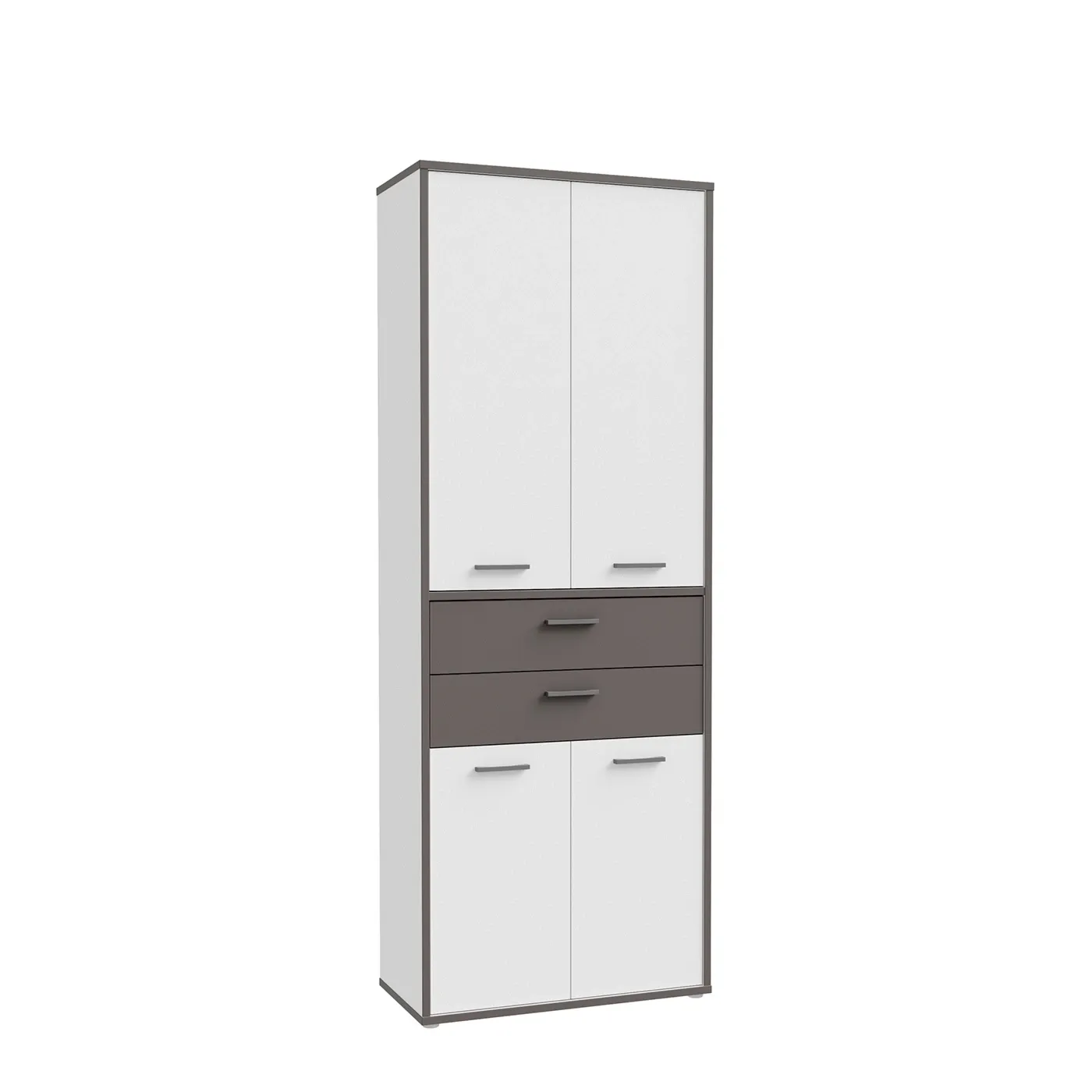 Armadietto 4 ante 2 cassetti, 85x227x42 h cm, Bianco e Grigio scuro