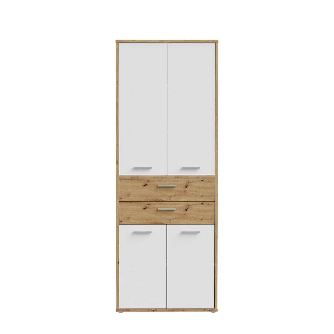 Armadietto da ufficio da design semplice e contemporaneamente elegante di color Bianco e Rovere artisan. I suoi 3 larghi ripiani costituiscono uno strumento di conservazione ideale per fare di questo mobile il proprio personale archivio di lavoro dove conservare carte o altri oggetti di varia natura.