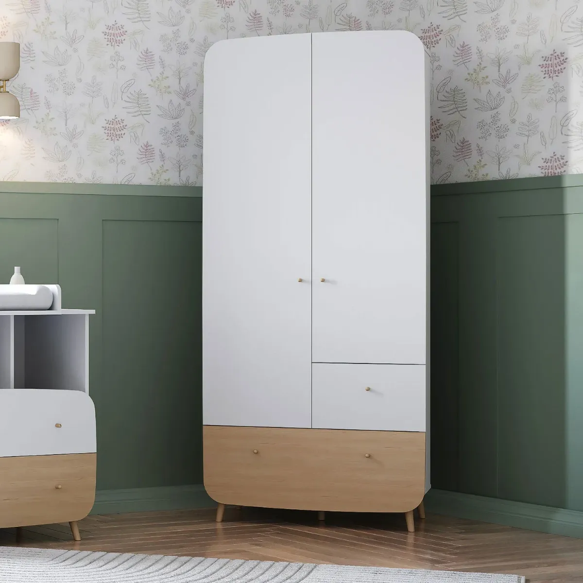 Armadietto Dory per camerette con piedini, Bianco opaco e Rovere