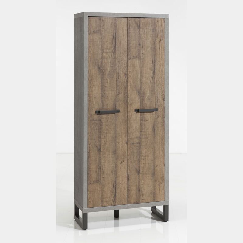 Armadio multiuso che si adatta davvero ad ogni tipo di esigenza, potrete posizionarlo all'ingresso, in garage, in camera, in bagno o nello sgabuzzino per tenere sempre in ordine la vostra casa. L'arredo da ingresso industry, 2 ante, colore cemento e rovere invecchiato ha uno spessore dei pannelli è di 38 mm, i piedi laterali in metallo misurano 15 cm.