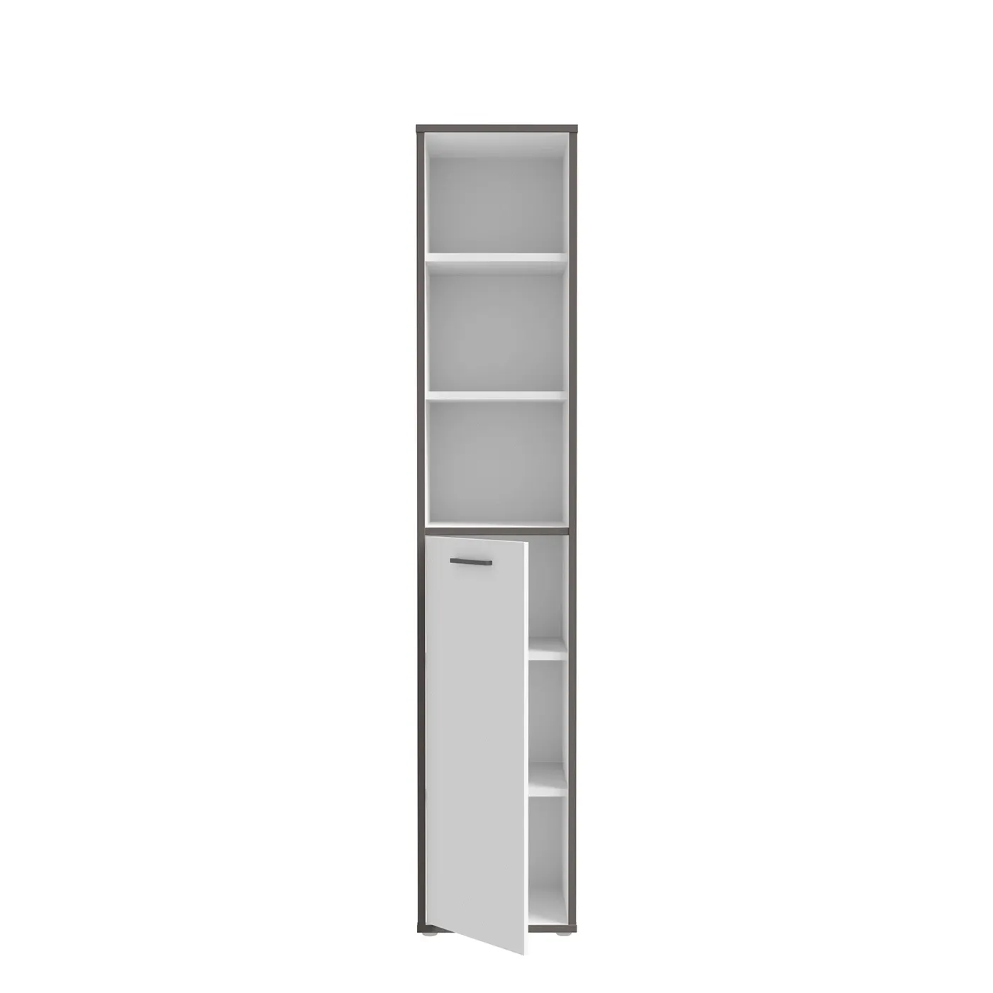 Armadietto-Libreria, 45x227x42 h cm, Bianco e Grigio scuro