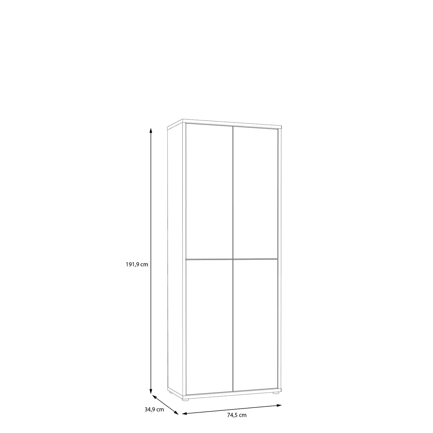 Armadietto multiuso 4 ante, 75x192x35 h cm, color Bianco gesso