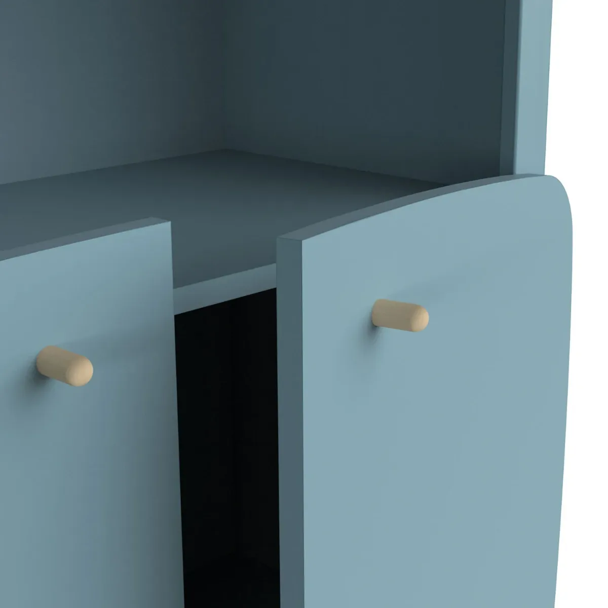 L'armadietto è composto da due ripiani a vista e due ante inferiori: risulta pratico e capiente, facilmente utilizzabile anche dai bambini.
