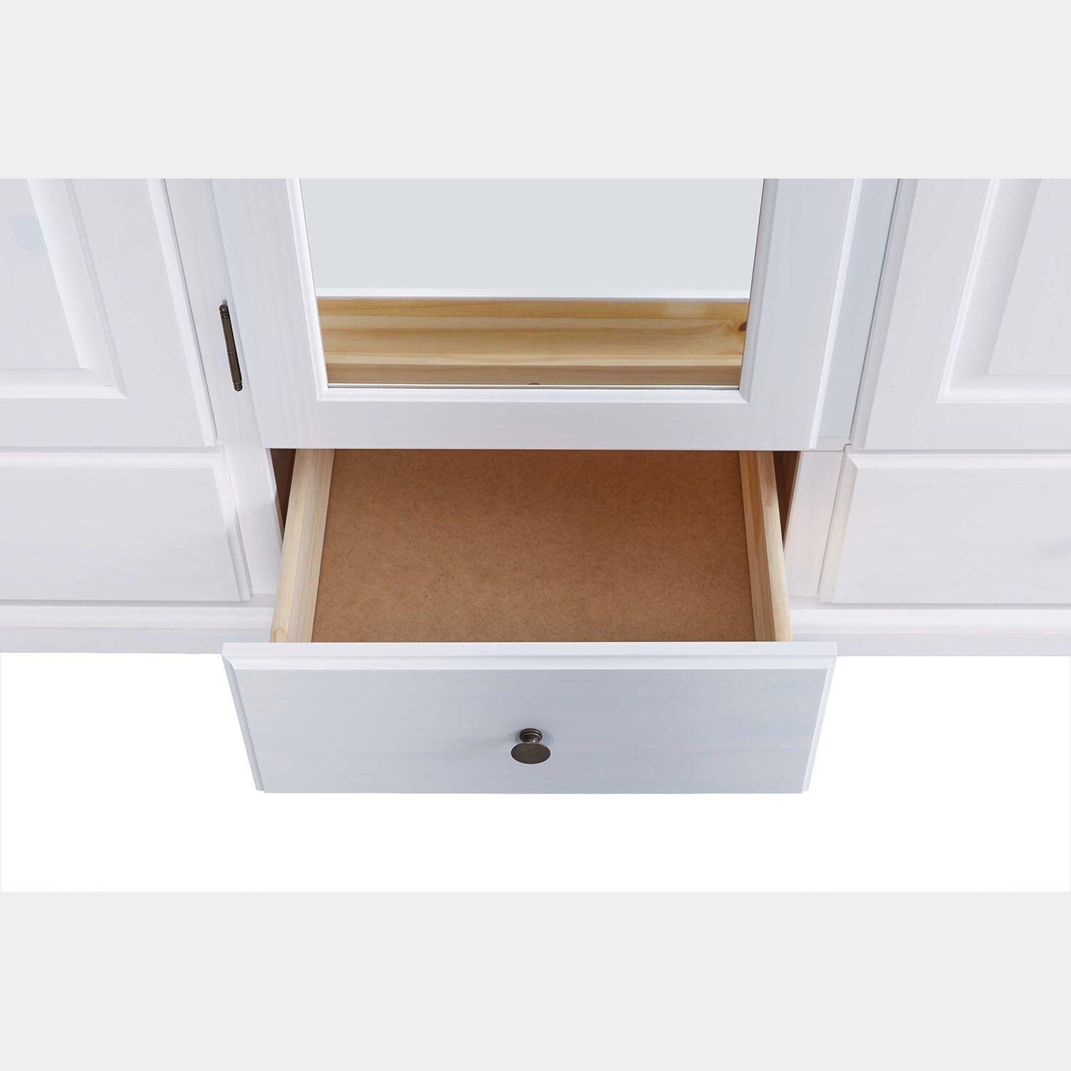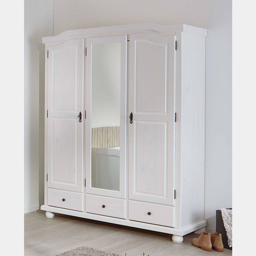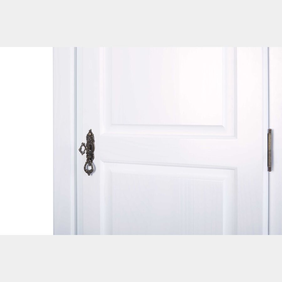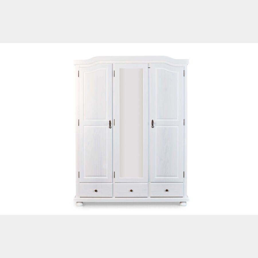 Armadio 2 ante, 4 ripiani + specchio, pino massello verniciato bianco