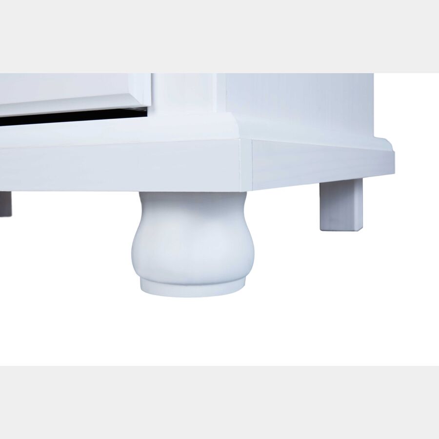 Si tratta di un mobilio fine e semplice che convince con dettagli eleganti e particolari.Il mobile è in legno massiccio, verniciato bianco, idrorepellente, di facile manutenzione con elementi in metallo.