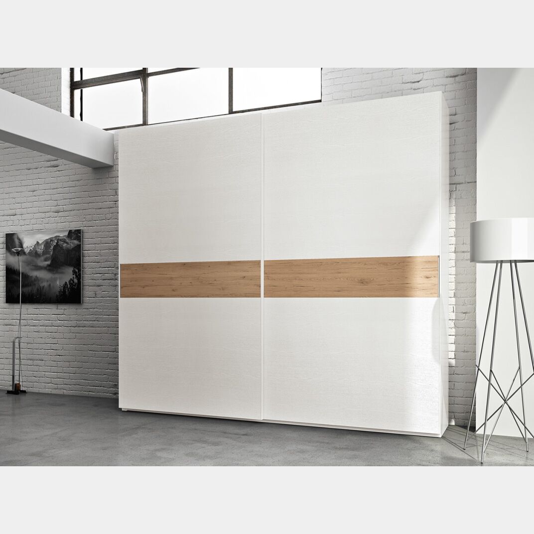Armadio 2 ante scorrevoli Bianco frassinato con fascia in Rovere nordico