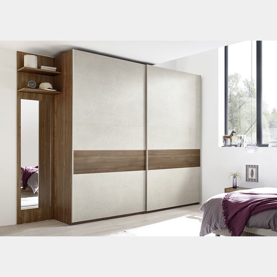 Armadio 2 ante scorrevoli, conveniente e moderno, finitura Noce Scuro, Argilla con inserto Noce