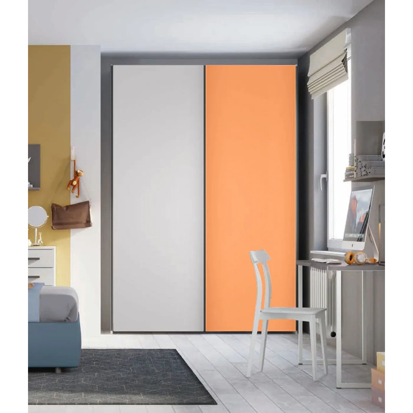 Armadio 2 ante scorrevoli H.225 L.178, finitura Papaya e Bianco Opaco