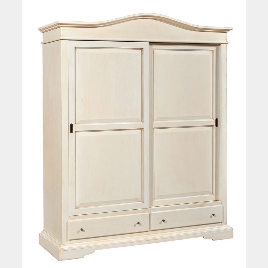 Armadio di pregevole fattura a 2 ante scorrevoli. La parte inferiore viene proposta con due cassetti portabiancheria di ampie dimensioni. Finitura Avorio Patinato.