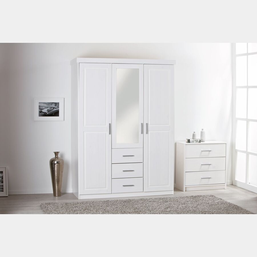 Armadio 2 ante + tre cassetti / pino massello verniciato ad acqua bianco