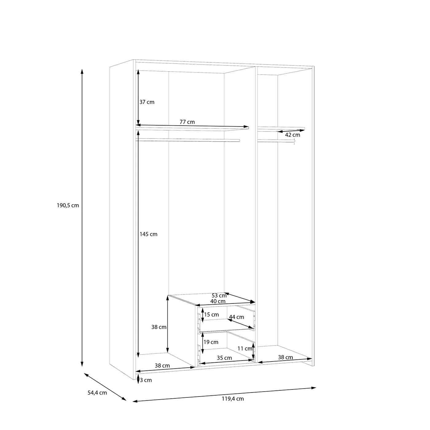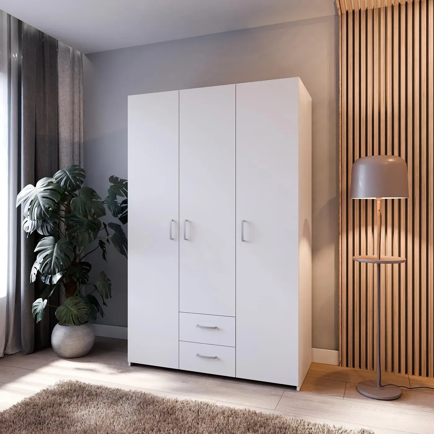 Armadio 3 ante battenti 2 cassetti, Bianco, L.120 H.191
