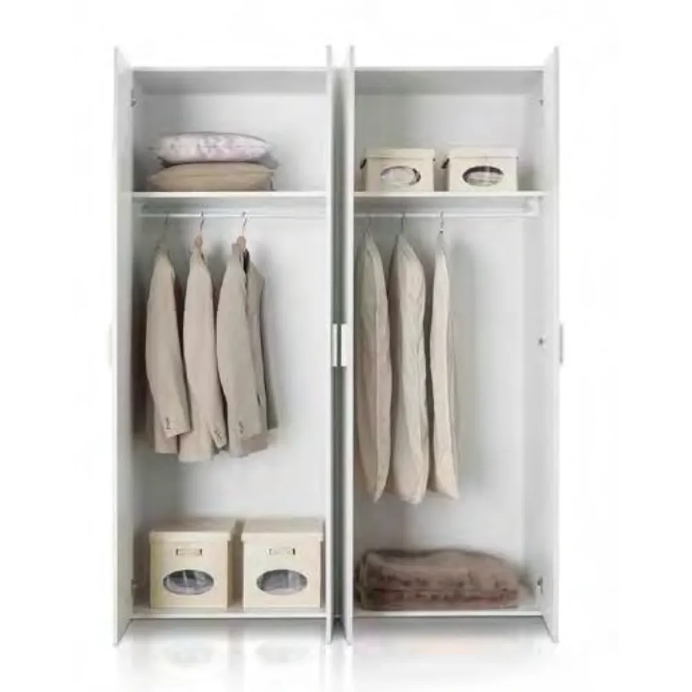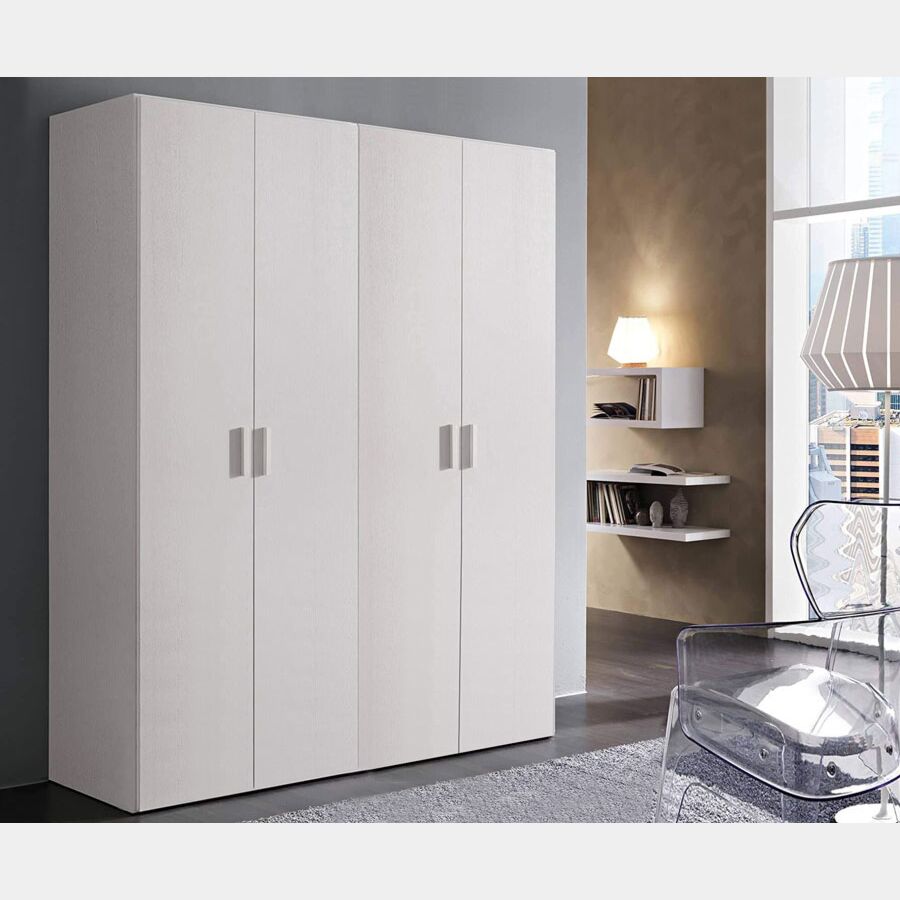 Ampio e robusto armadio a 4 ante battenti bianco frassinato. Moderno e funzionale si adatta alla tua zona notte ma è utile anche come armadio destinato al cambio di stagione. In dotazione 4 tubi appendiabiti e due ripiani interni.