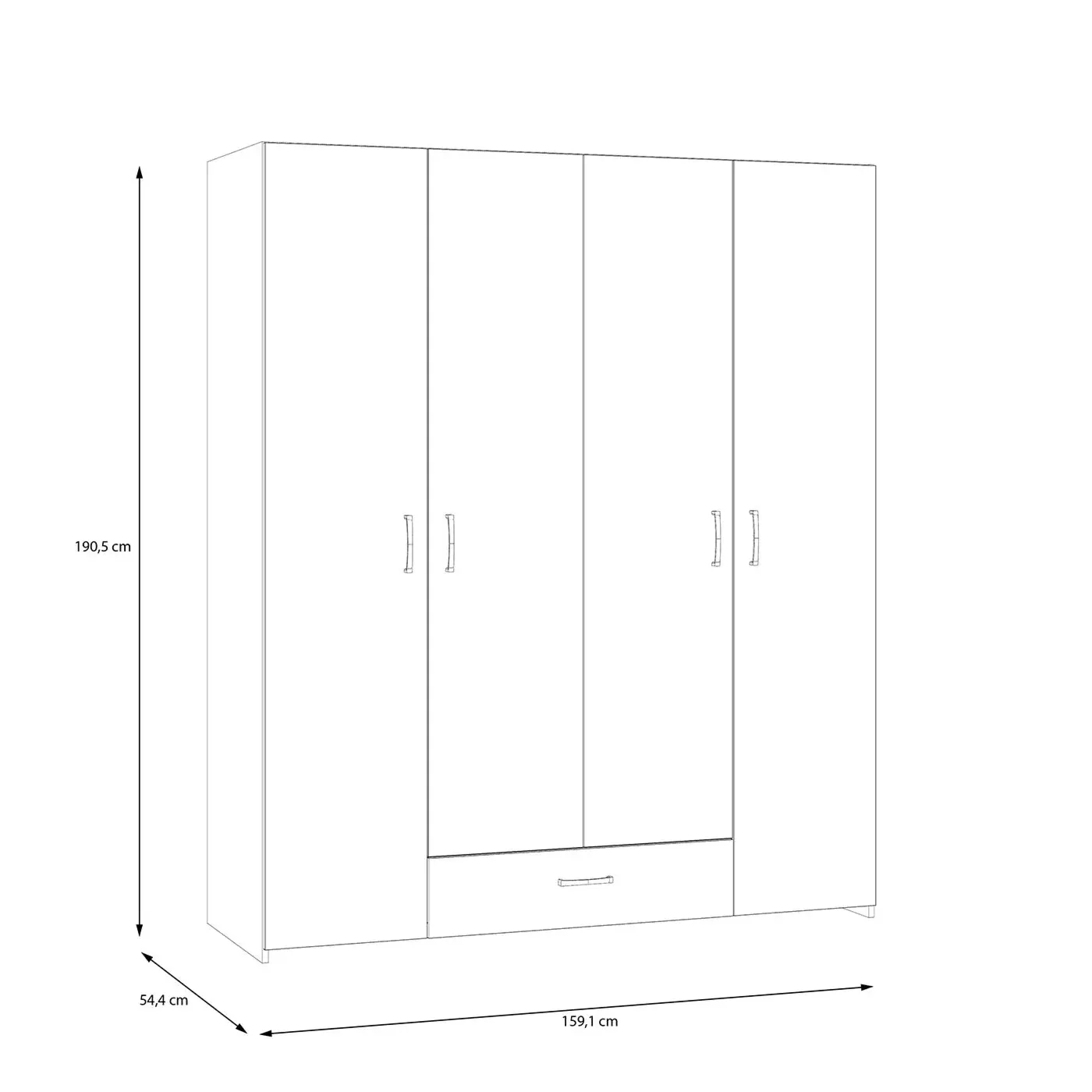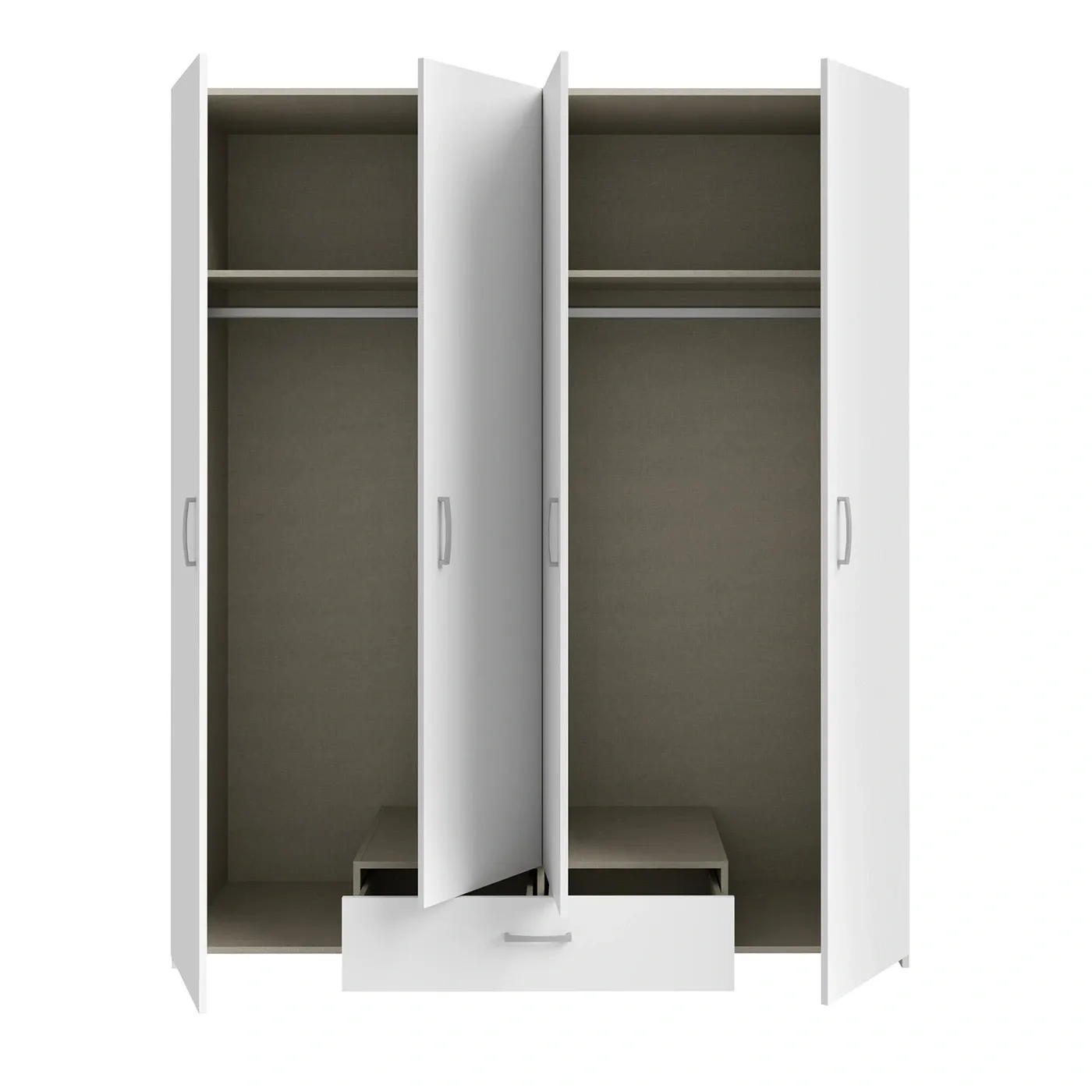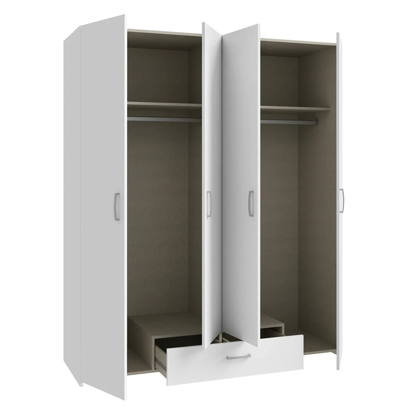 Armadio 4 ante battenti 1 cassetto, Bianco, L.160 H.191