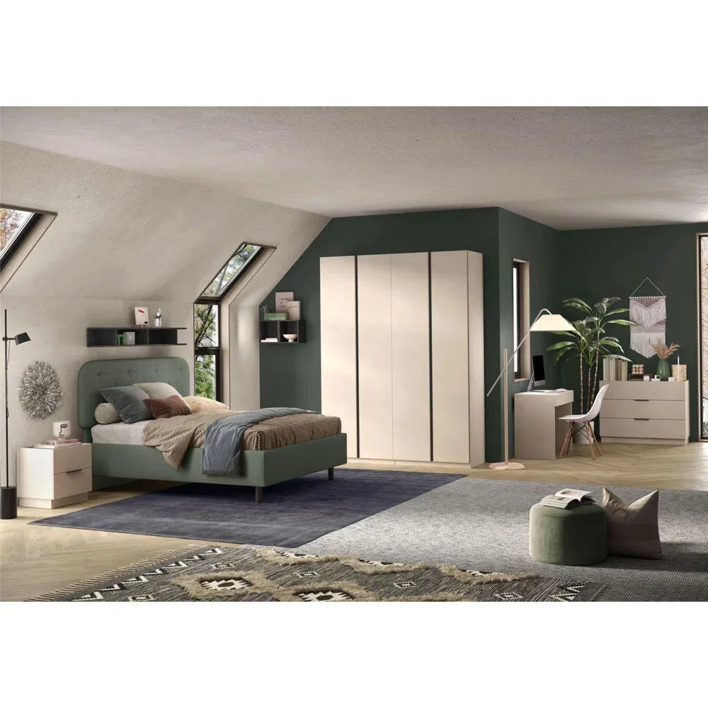 La finitura Cashmere, di grande tendenza, assicura alla camera da letto o cameretta un arredo elegante e moderno, donando armonia e calore all'ambiente.