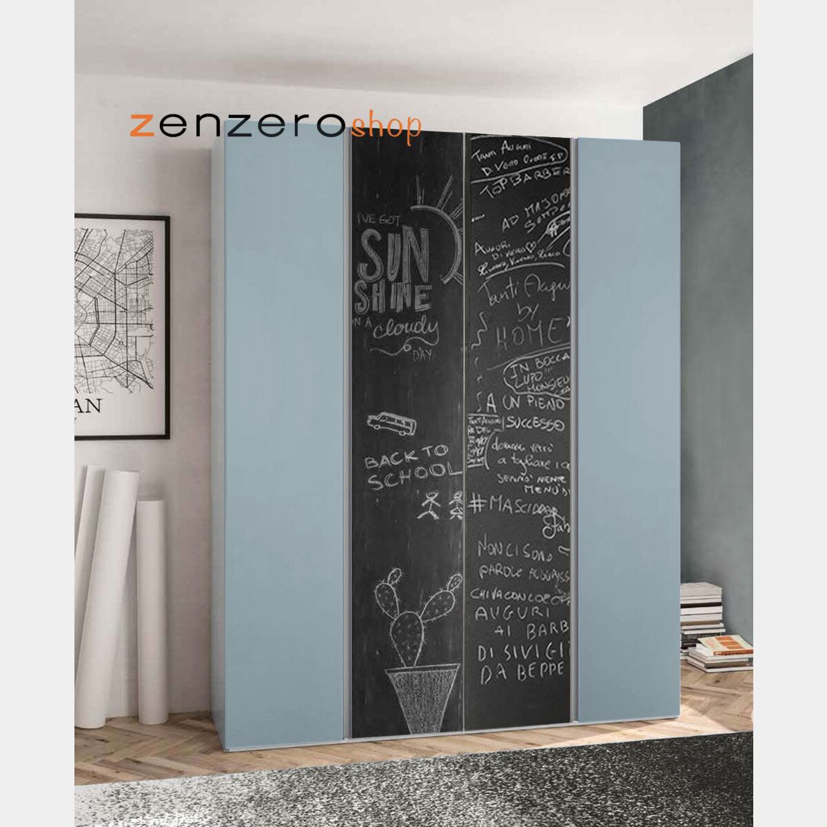 Armadio 4 ante con ante a lavagna e maniglie a gola, colore Carta da zucchero
