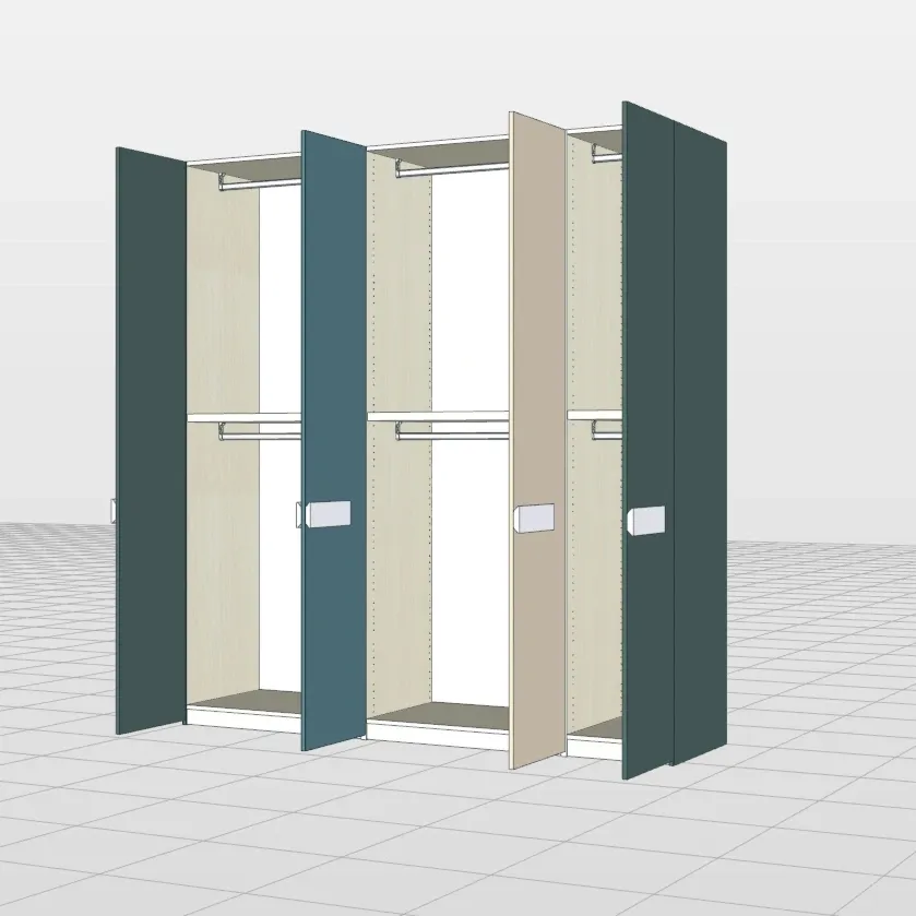 Questa combinazione di colori, con l'alternanza tra toni freddi e caldi, rende l'armadio super dinamico e piacevole alla vista. Divertiti a creare accostamenti di colori per creare un armadio che entri in armonia con la tua camera da letto!