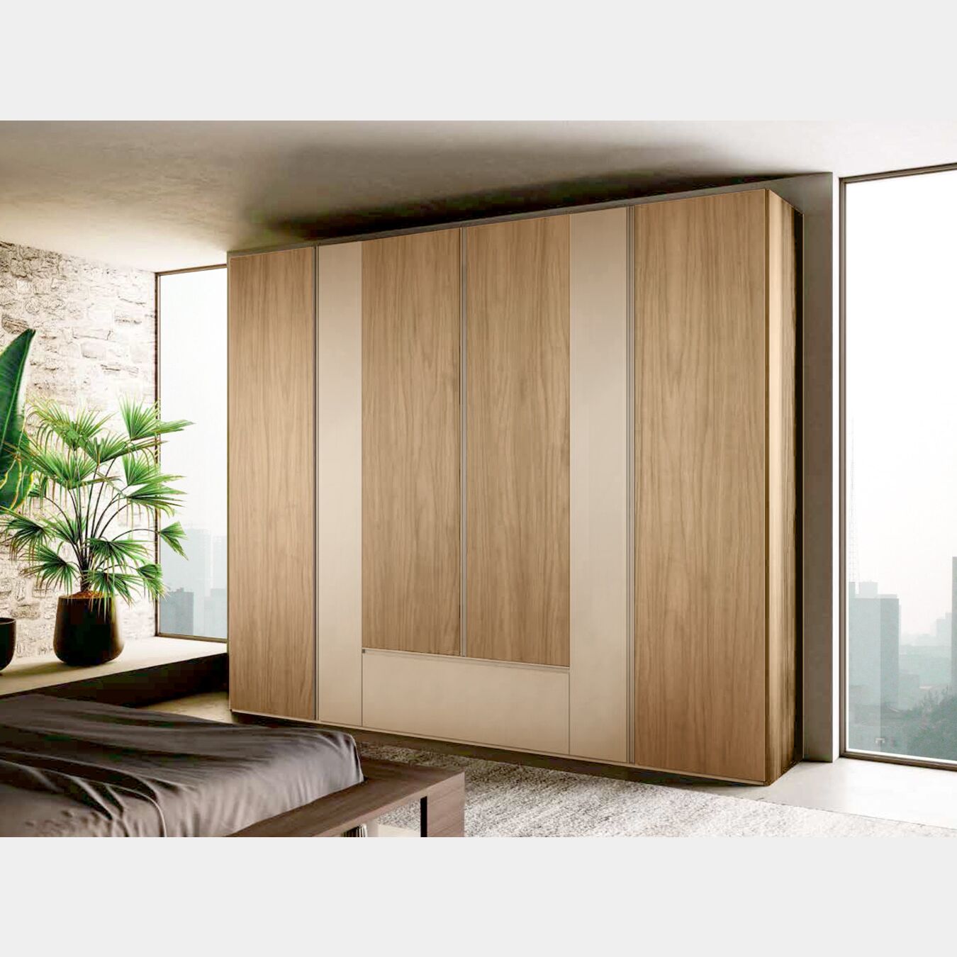 Armadio 6 ante battenti e cassetto, finitura Noce biondo e Orzo