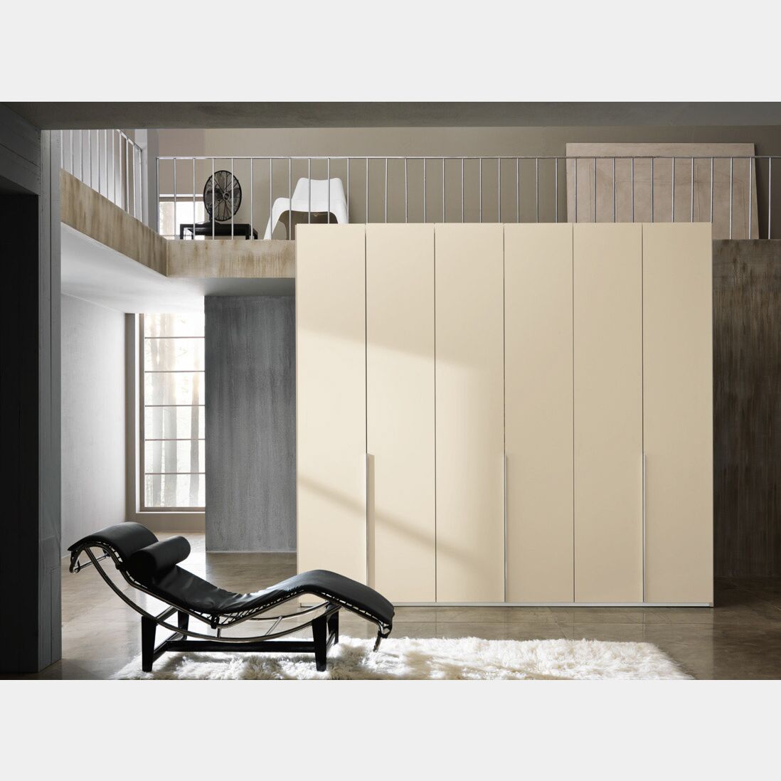 Un'elegante finitura in Terra opaco caratterizza l'armadio a 6 ante battente, rendendolo così adattabile a diversi contesti e stili.