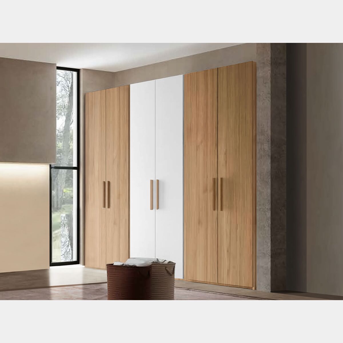 Armadio 6 ante Bianco opaco e Noce biondo, H.234