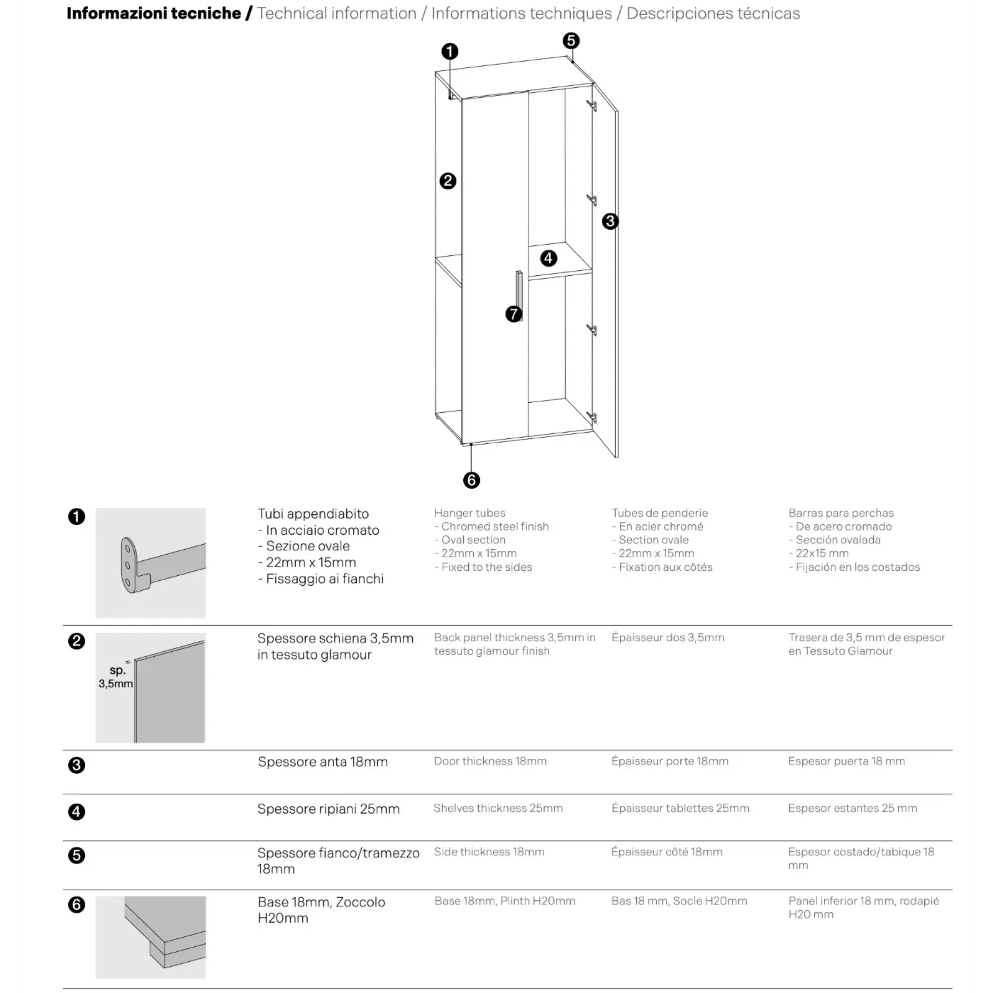 La sua struttura è maestosa, con ben otto ante che si estendono dal pavimento al soffitto, offrendoti uno spazio incredibile per riporre ogni cosa, dai vestiti alle scarpe, dagli accessori alla biancheria da letto.