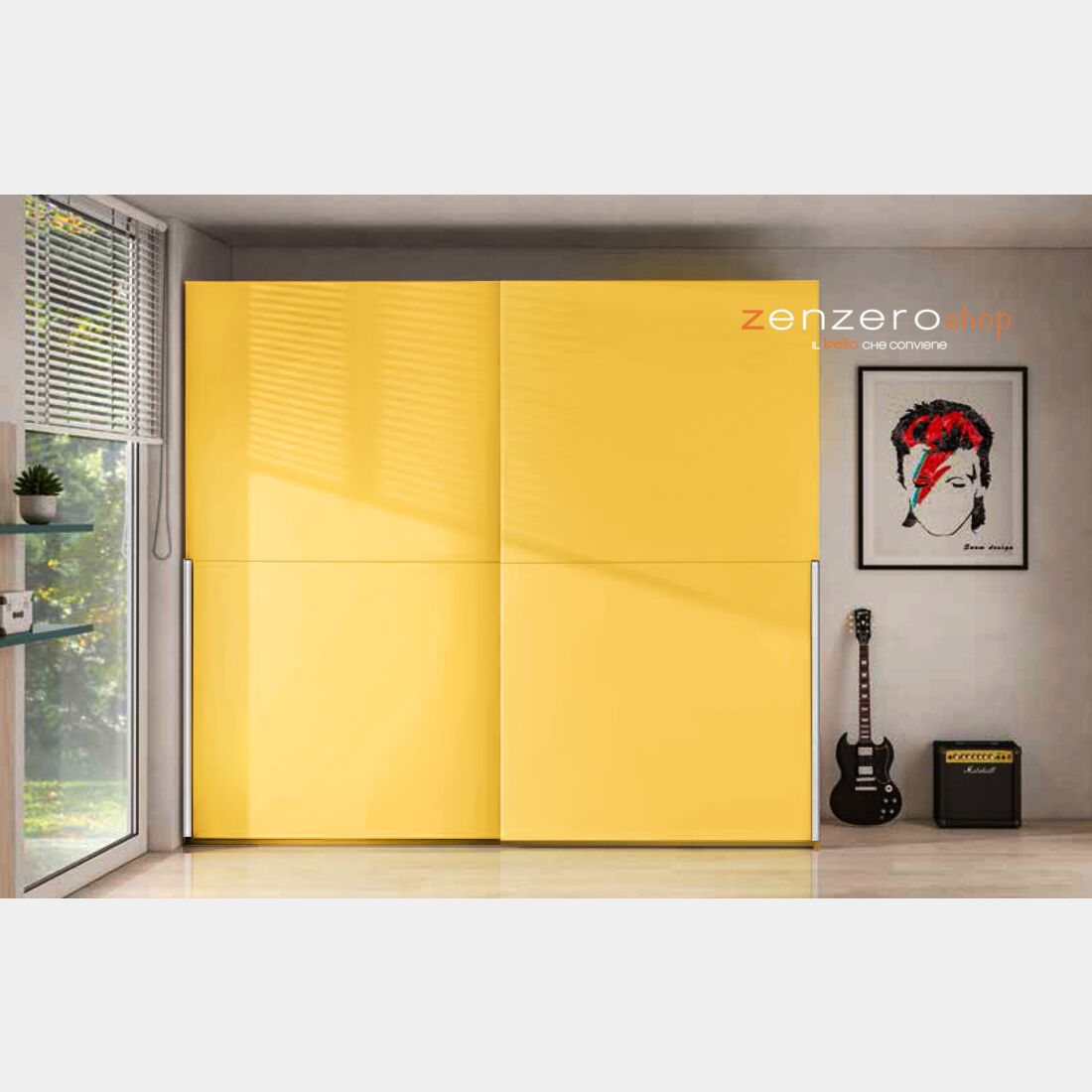 Armadio a 2 ante scorrevoli, finitura Bianco Opaco e Giallo Grano