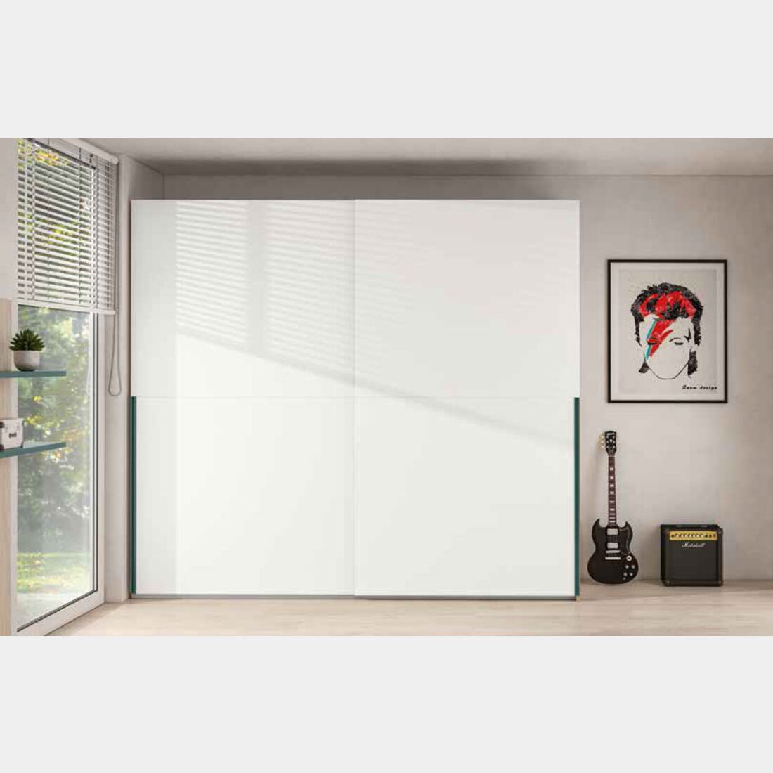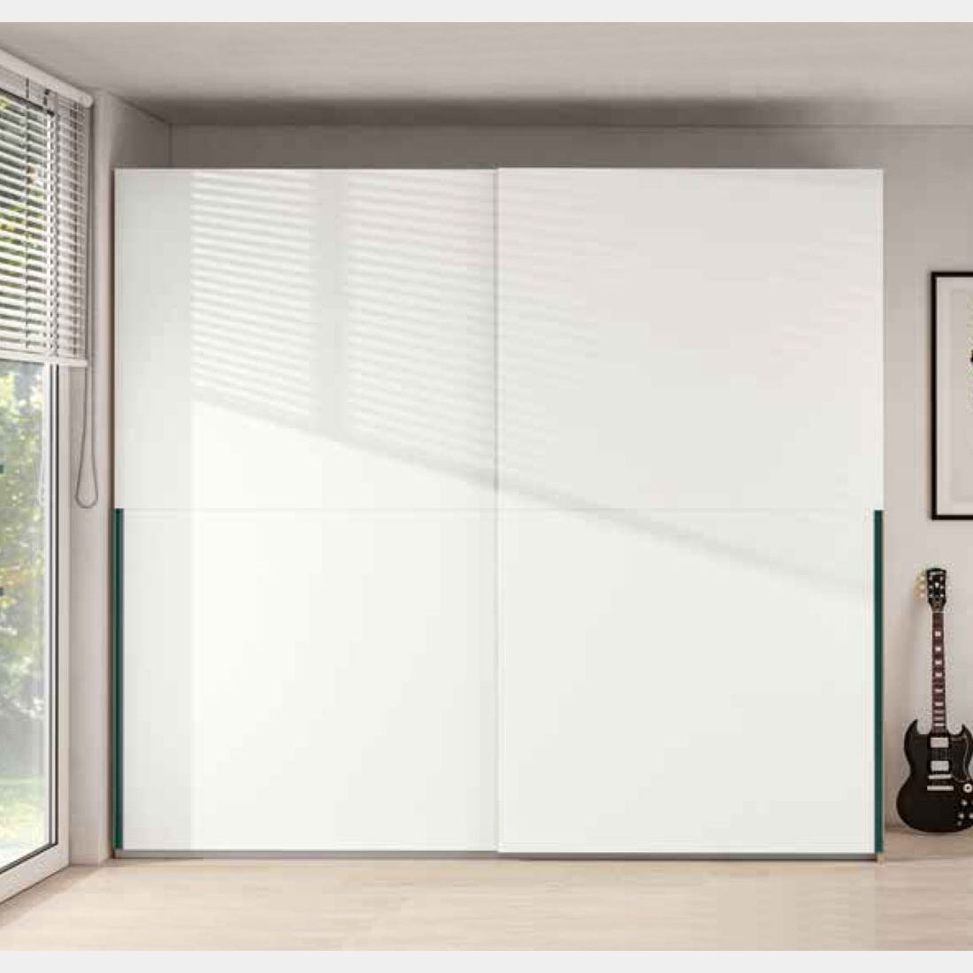 Armadio scorrevole proposto nella versione 2 ante per rispondere alla massima funzionalità per l’intera parete della camera ma anche in servizio su un corridoio o un passaggio. Le finiture di ante e scocca sono di categoria Essenze e Colorati ma possono essere scelti di finiture diverse, permettendo di posizionare l'armadio in camere matrimoniali o camerette per ragazzi.