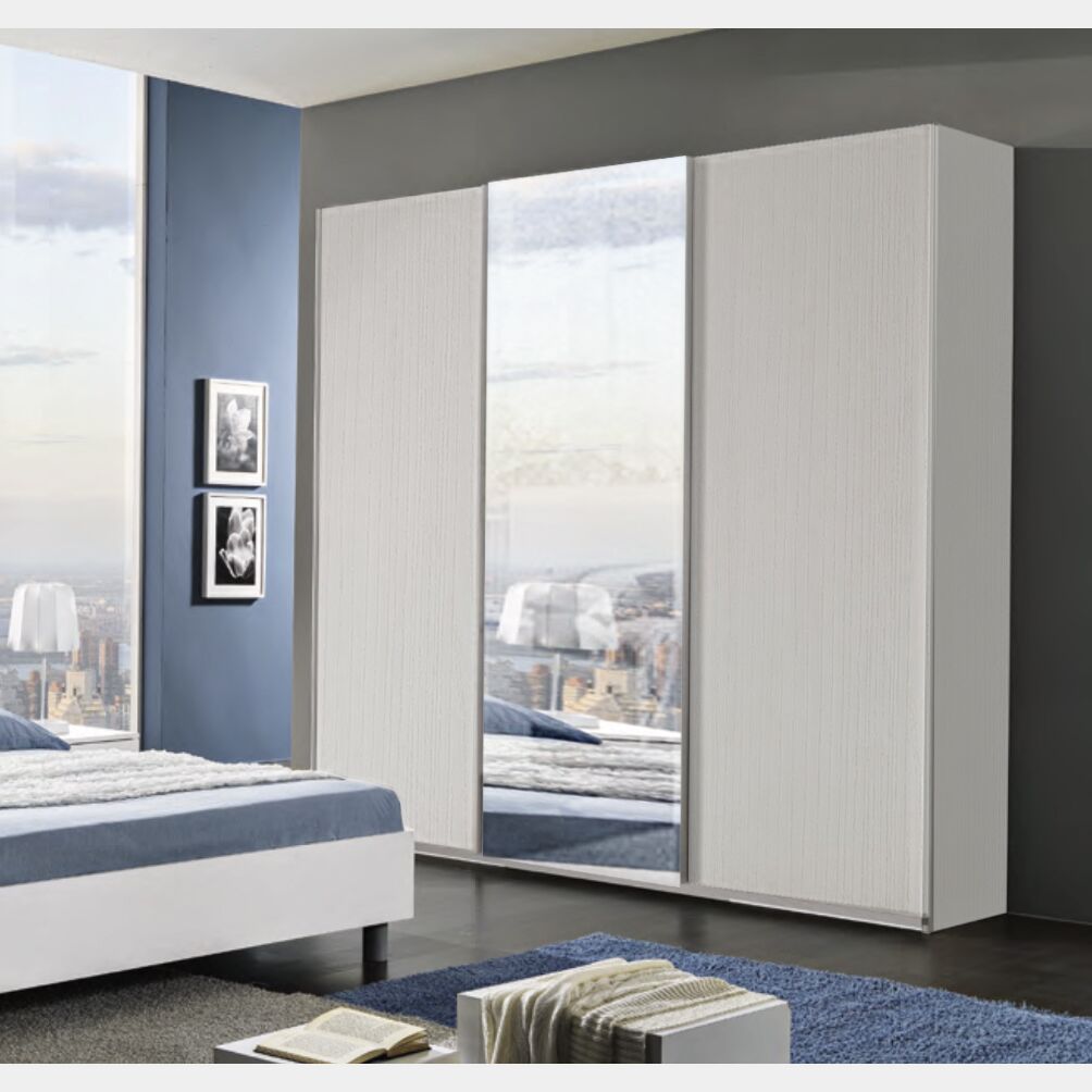 Armadio a 3 ante scorrevoli bianco frassinato con specchio