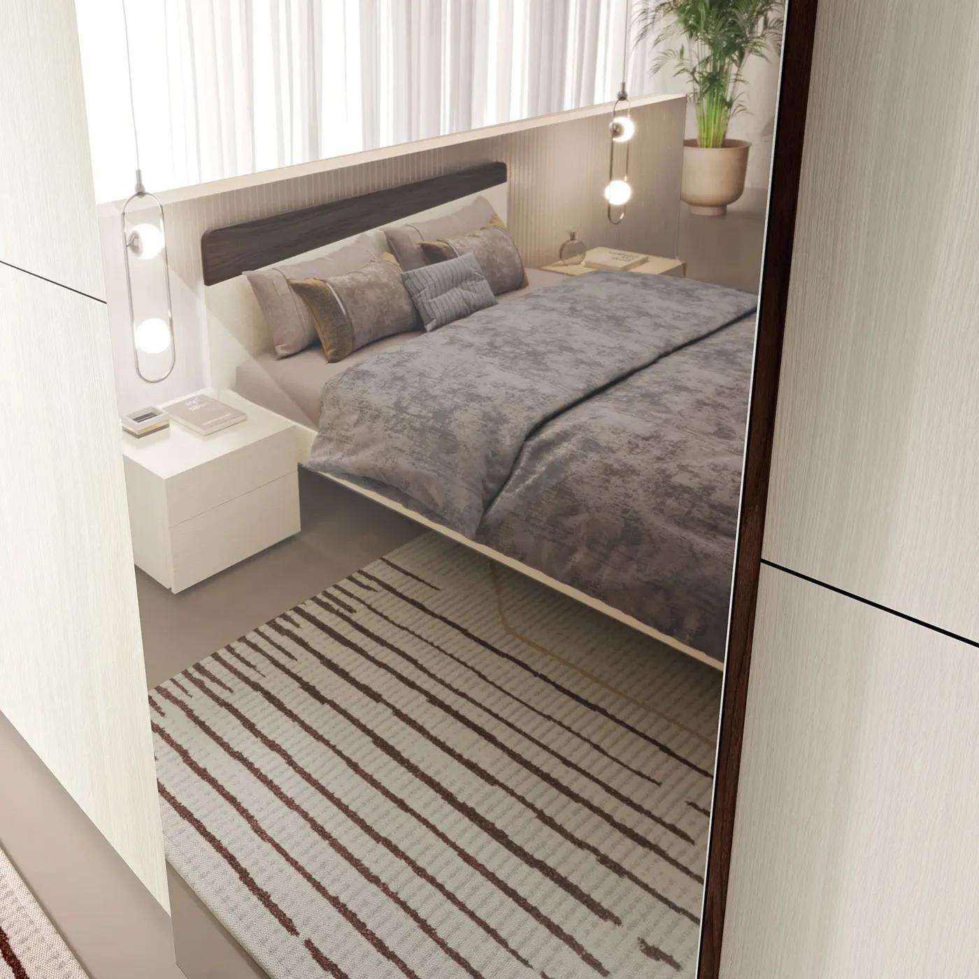 L'anta a specchio, oltre ad ampliare visivamente lo spazio e a conferire un'ulteriore gradevolezza estetica, si rivela un prezioso alleato per provare e ammirare i tuoi outfit.