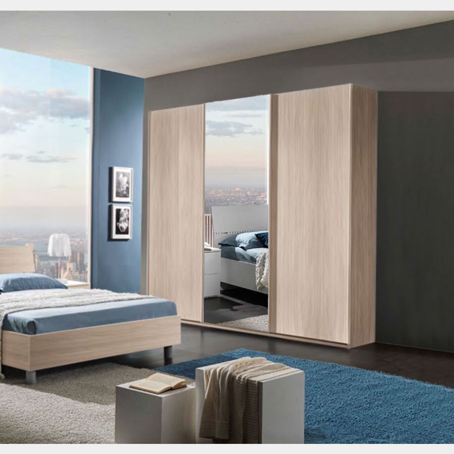 Armadio scorrevole a 3 ante colore olmo frida con specchio