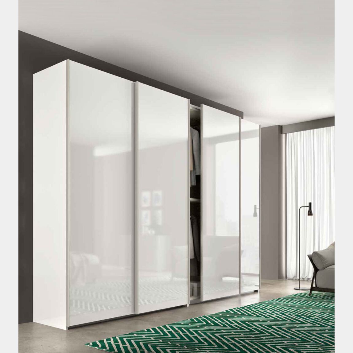 Armadio a 4 ante scorrevoli con struttura e ante Bianche laccate Lucido