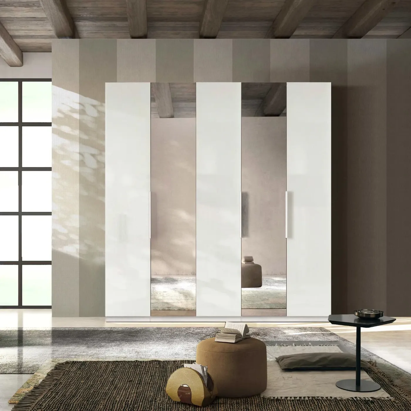 Armadio a 5 ante di cui 2 specchi, ideale se si cerca un mobile di grande capienze per contenervi tutti i vostri capi d'abbigliamento. All'interno vi sono 1 ripiano e 2 tubi appendiabiti per modulo.